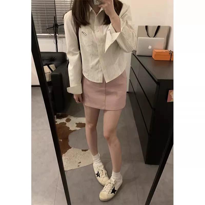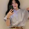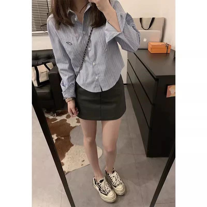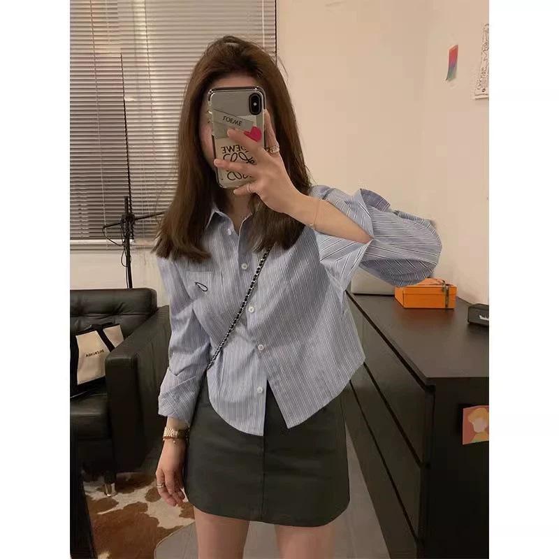 Camisa de rayas azules para mujer, primavera y otoño, estilo Hong Kong, holgada, diseño francés, manga larga, corta.