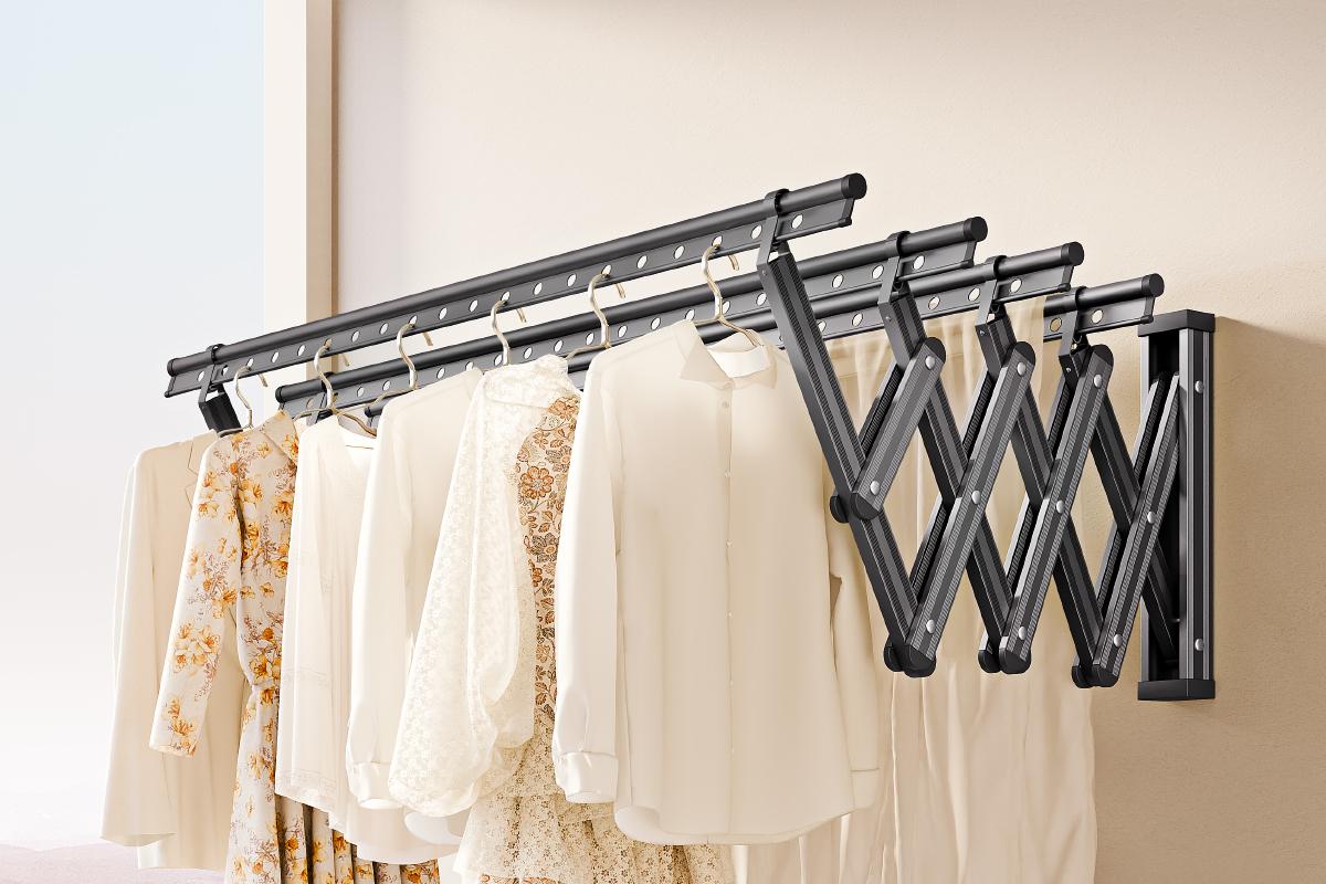 Tendedero de balcón montado lateralmente, fijado a la pared, plegable, de pared lateral push-pull, tendedero lateral para apartamento pequeño B & r