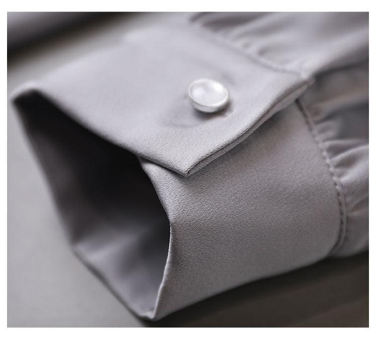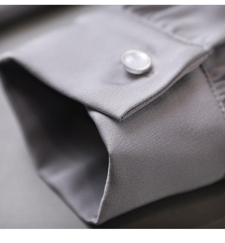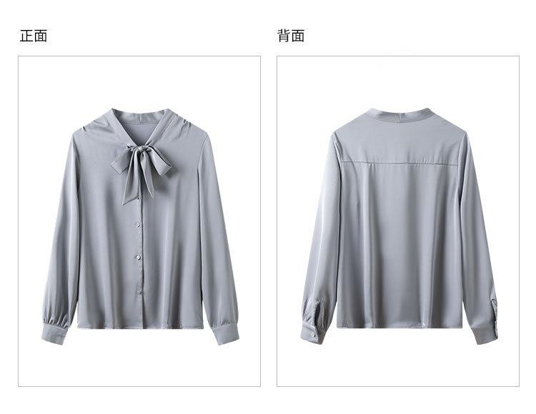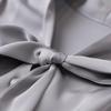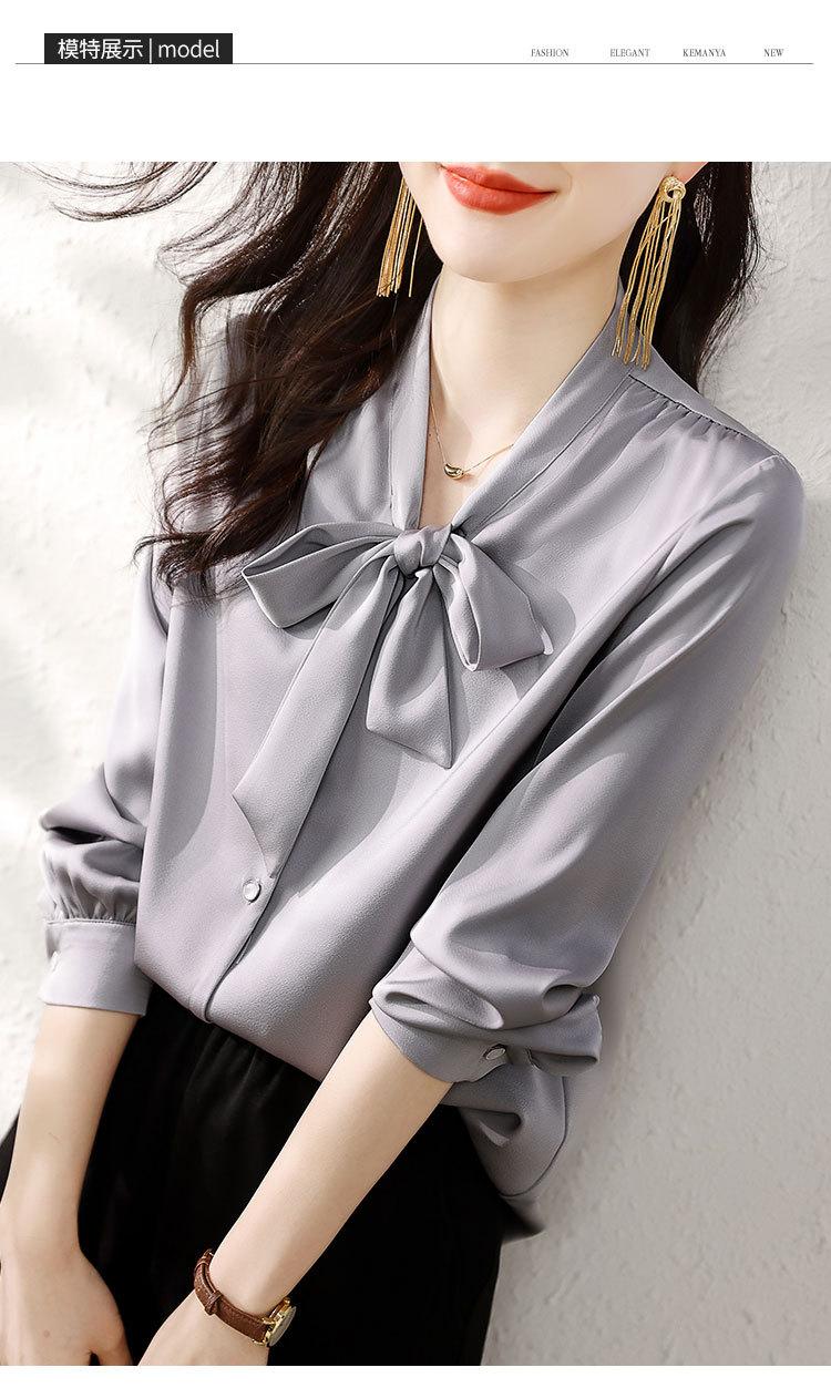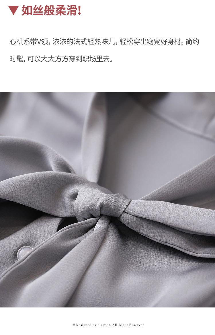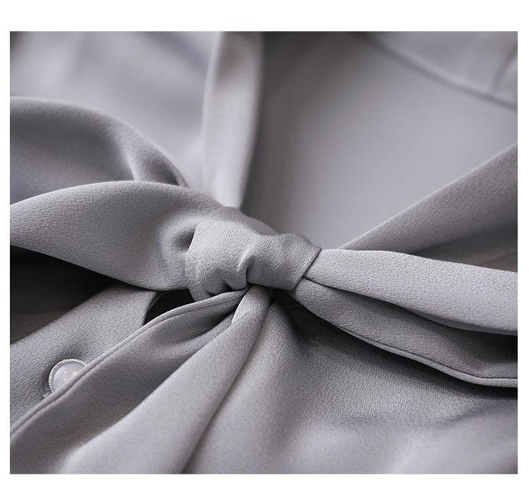 Camisa de mujer nueva de satén con cuello en V de alta gama, nueva base decorativa con lazo de otoño 2024