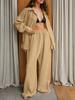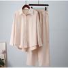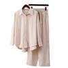 Moda 2025 Otoño e Invierno Nuevo Conjunto Casual de 2 Piezas para Mujer, Camisa Holgada Elástica Arrugada de Manga Larga y Pantalón de Pierna Ancha de Estilo Europeo y Americano
