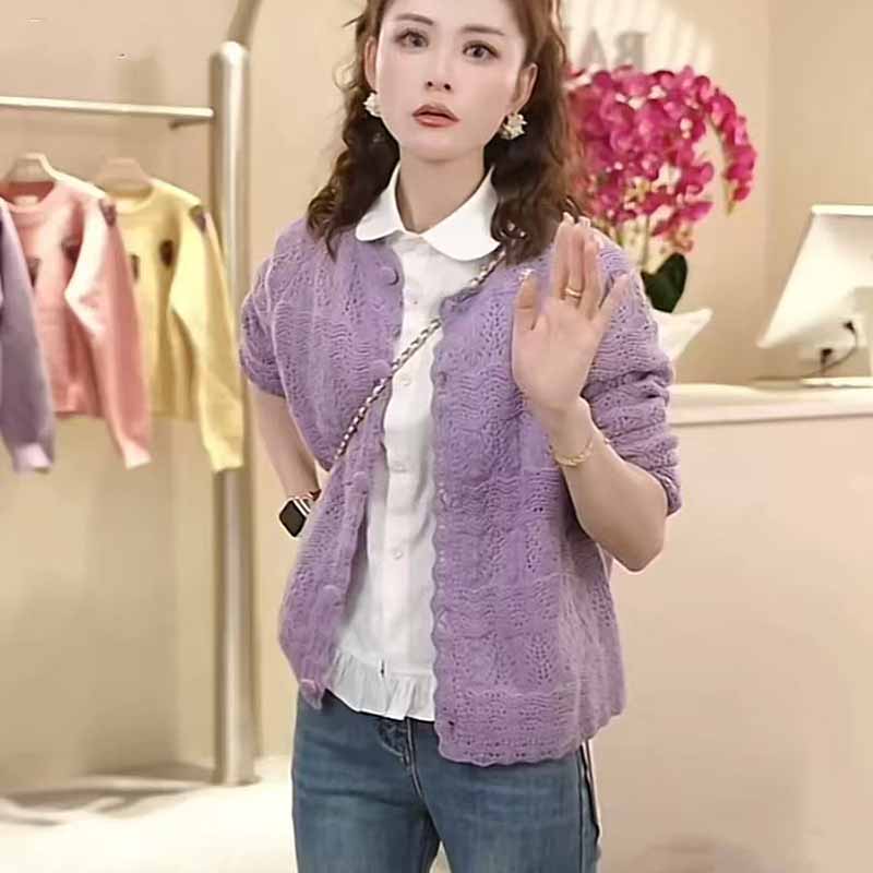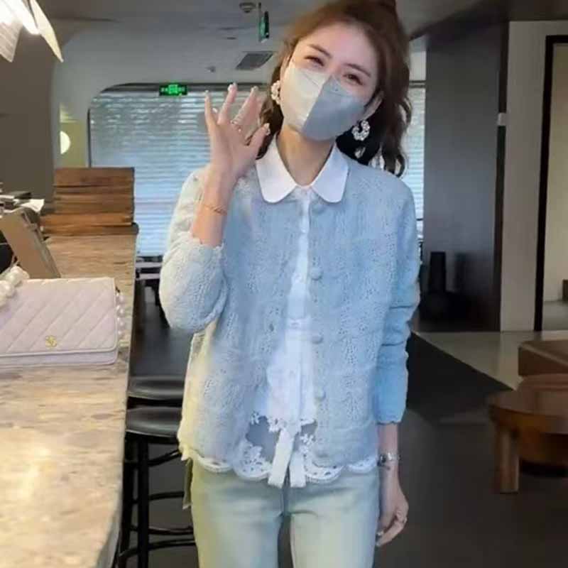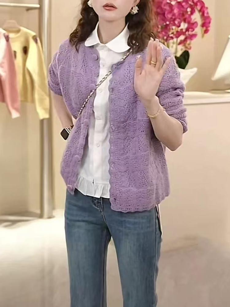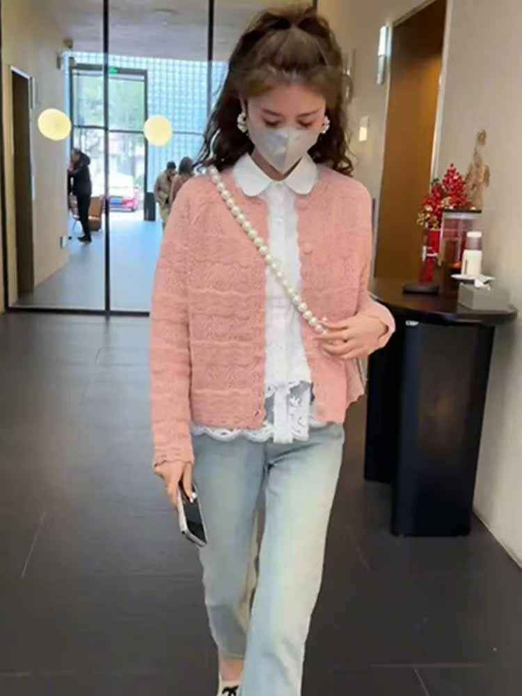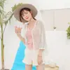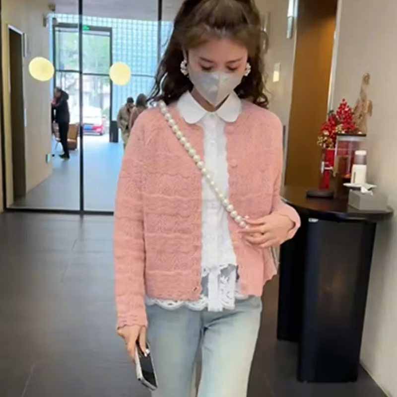 Cárdigan de encaje calado de primavera, top de punto suave y encerado para mujer, nueva chaqueta antiedad sencilla que combina con todo, con gancho y flores a la moda.