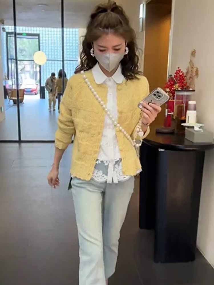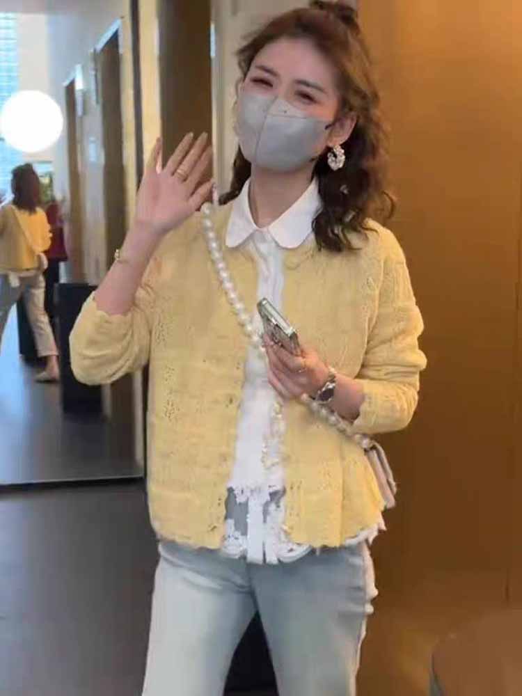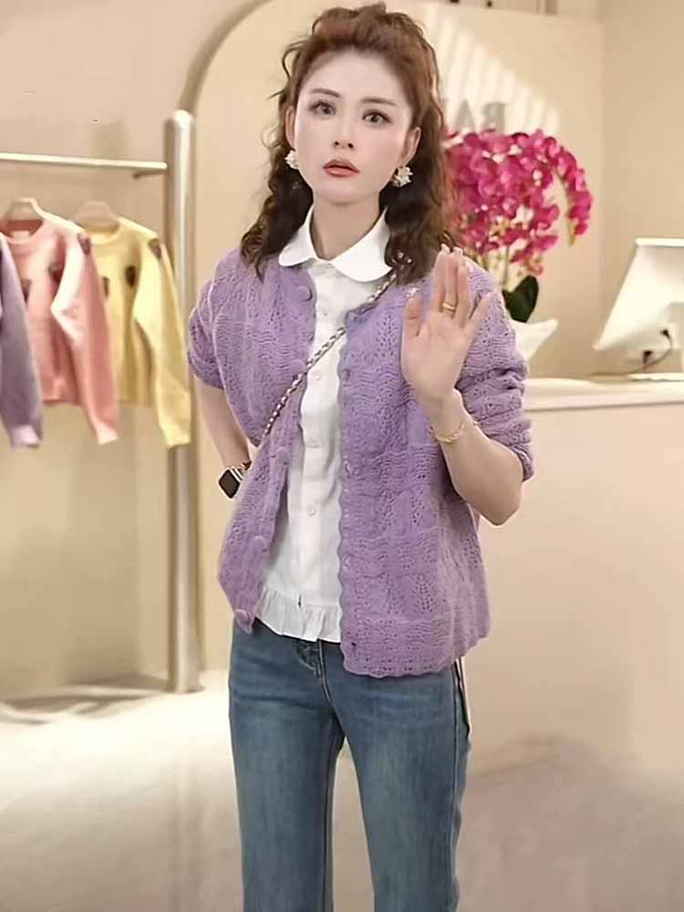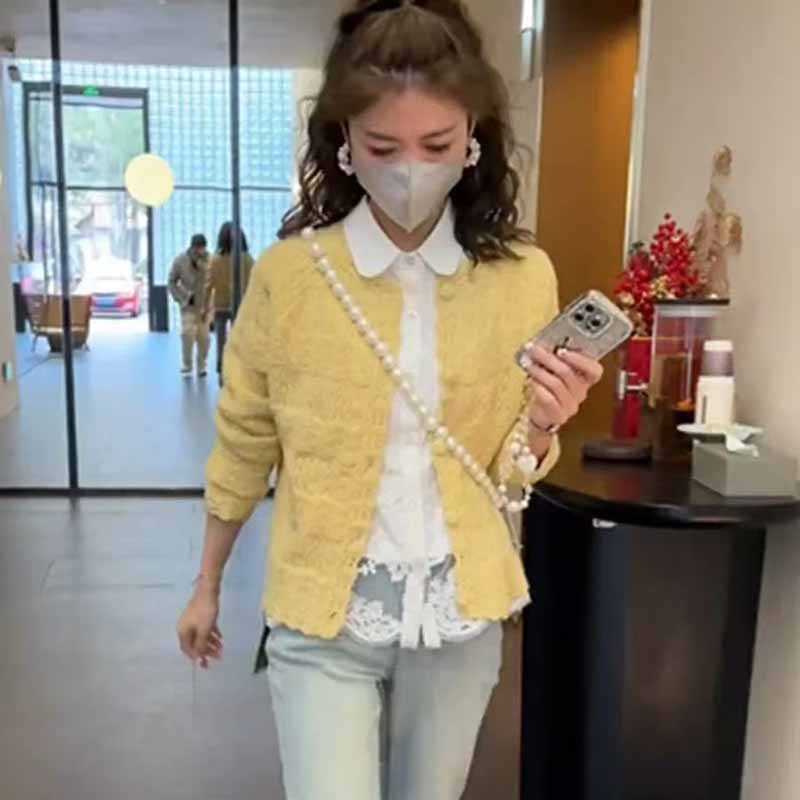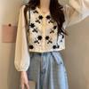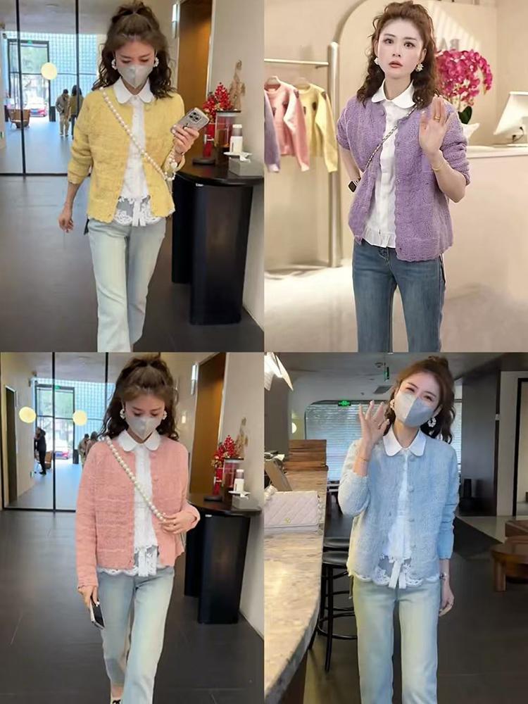 Cárdigan de encaje calado de primavera, top de punto suave y encerado para mujer, nueva chaqueta antiedad sencilla que combina con todo, con gancho y flores a la moda.