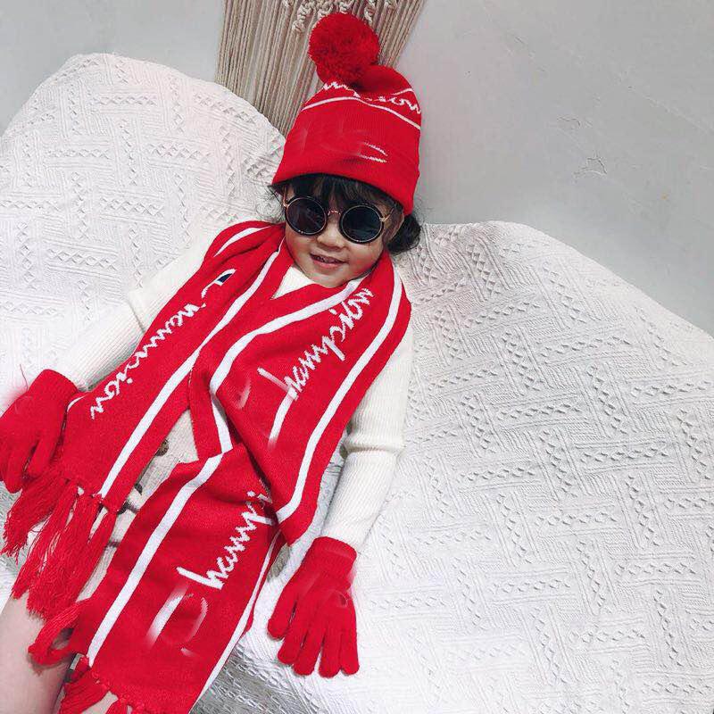 Gorros, bufandas y guantes para hombre y mujer, traje de tres piezas, gorro de lana de punto, para bebé, cálido en otoño e invierno.