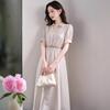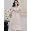 Elegante vestido de traje francés de alta gama 2025, nuevo estilo para gente pequeña y elegante con una hermosa falda fluida.