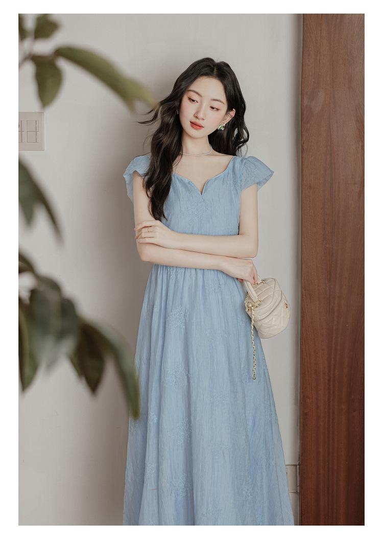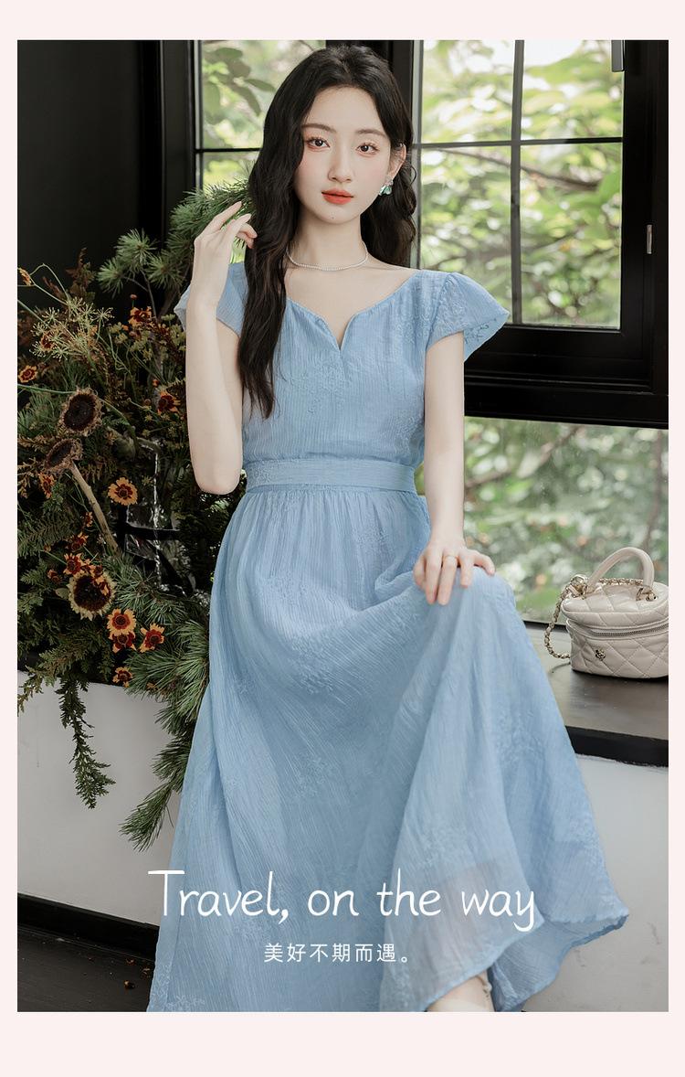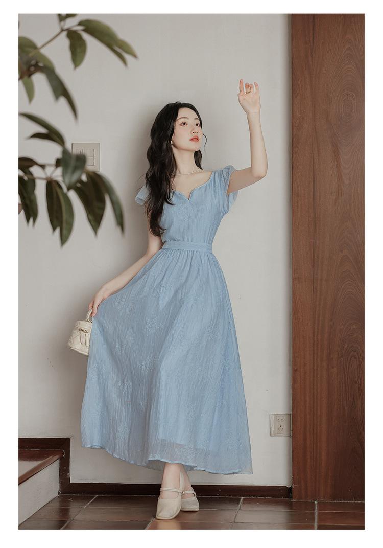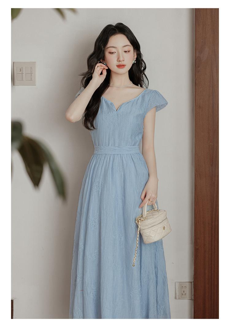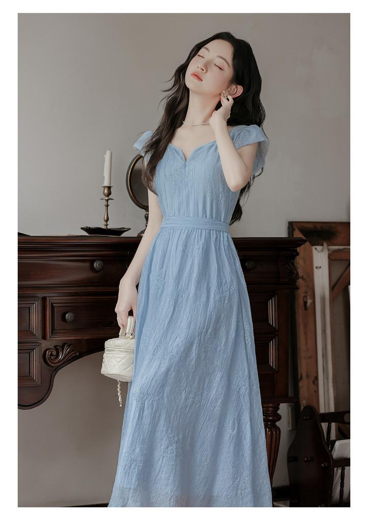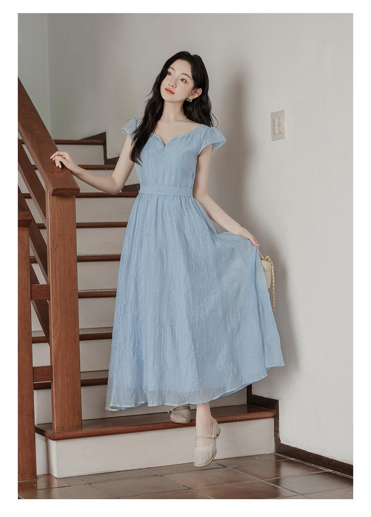 Vestido Francés Cool Semiespalda Bordado Diario Vacaciones Manga Corta