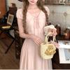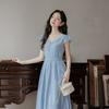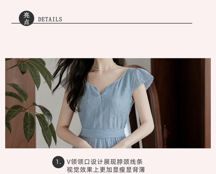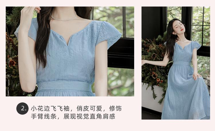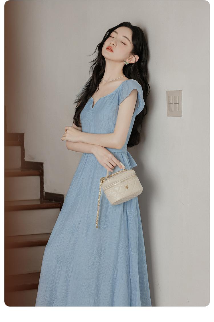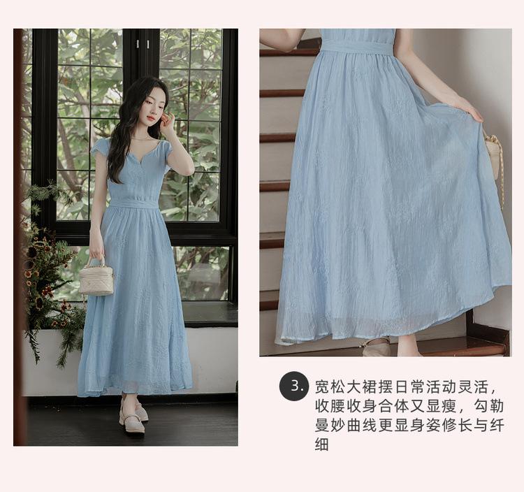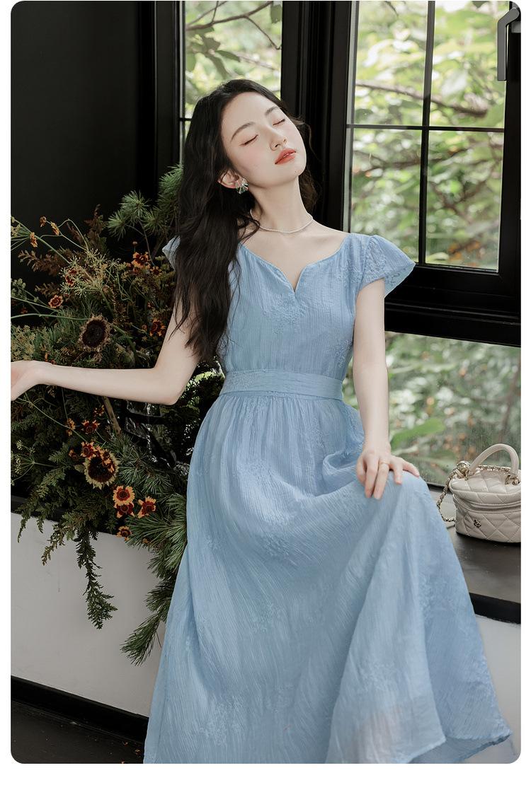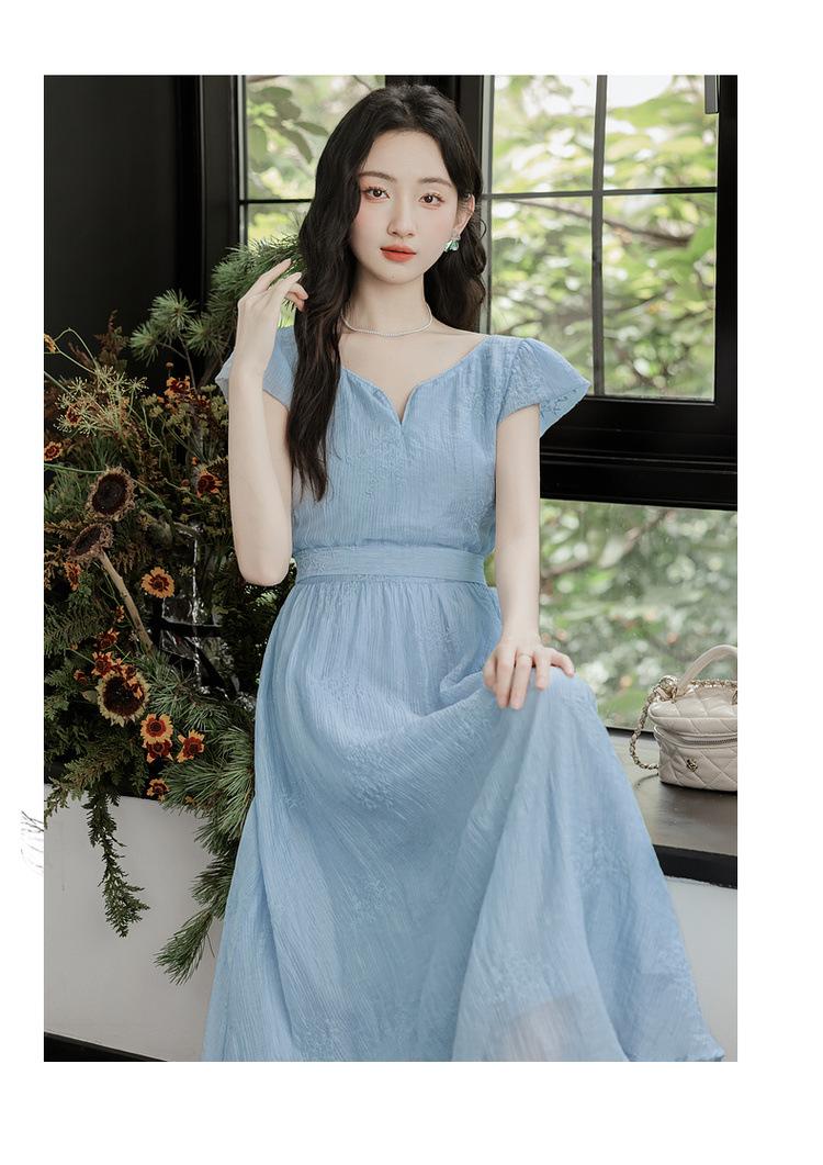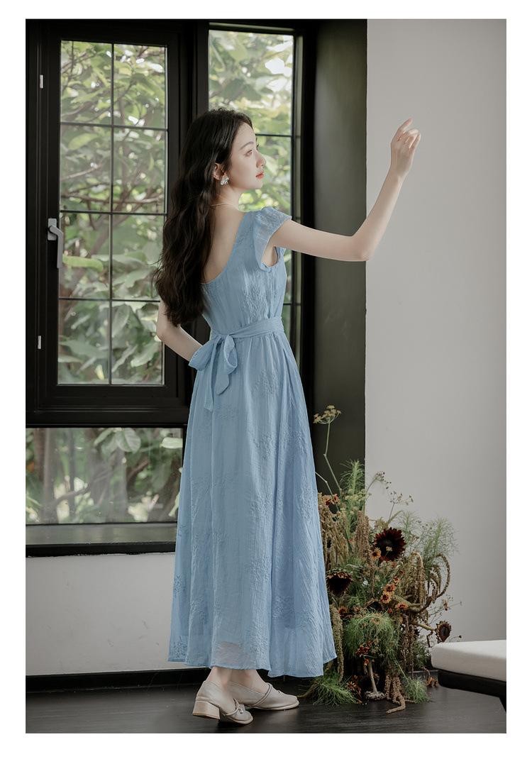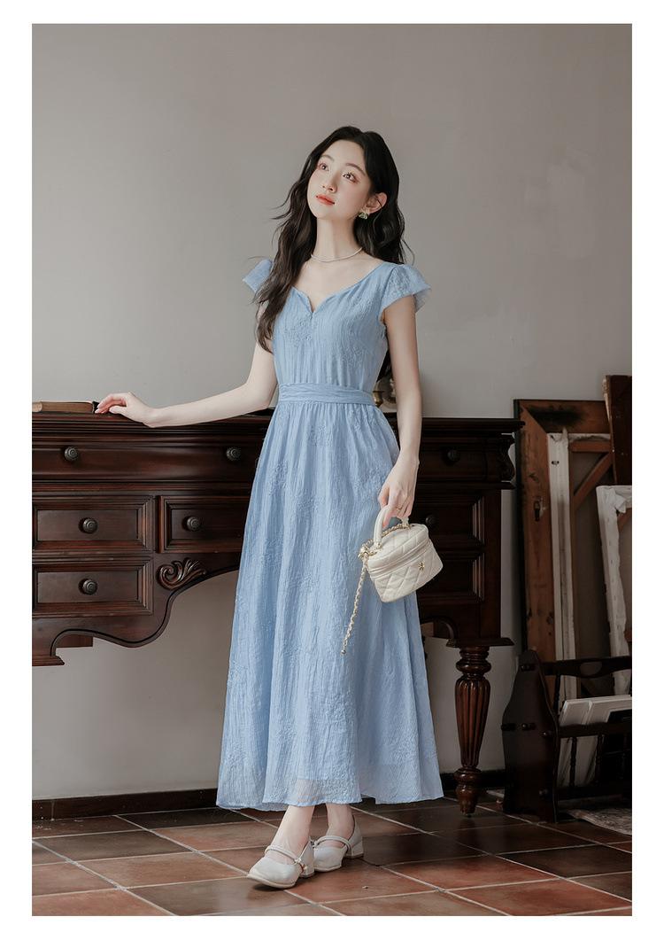 Vestido Francés Cool Semiespalda Bordado Diario Vacaciones Manga Corta