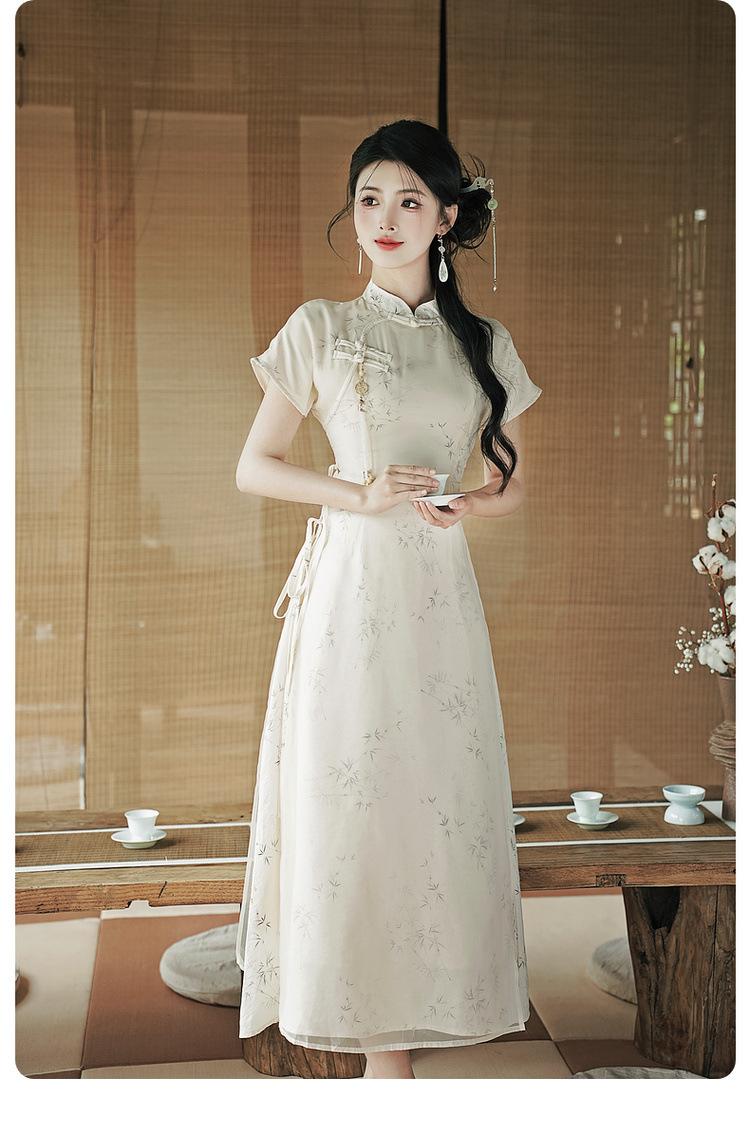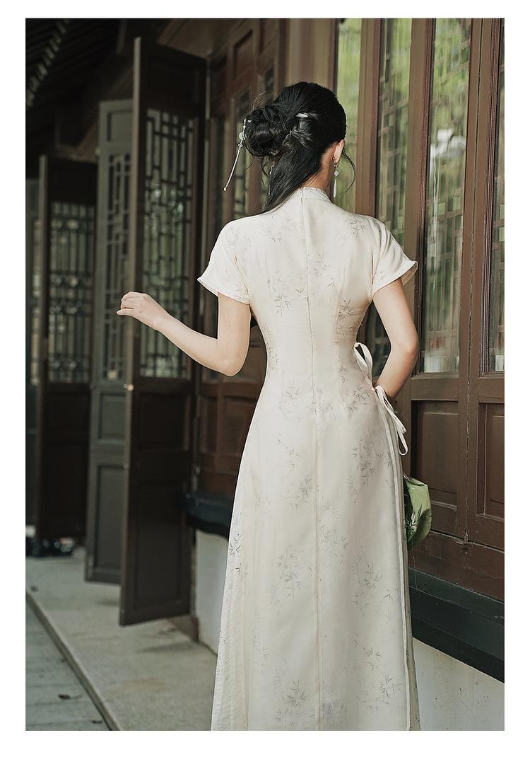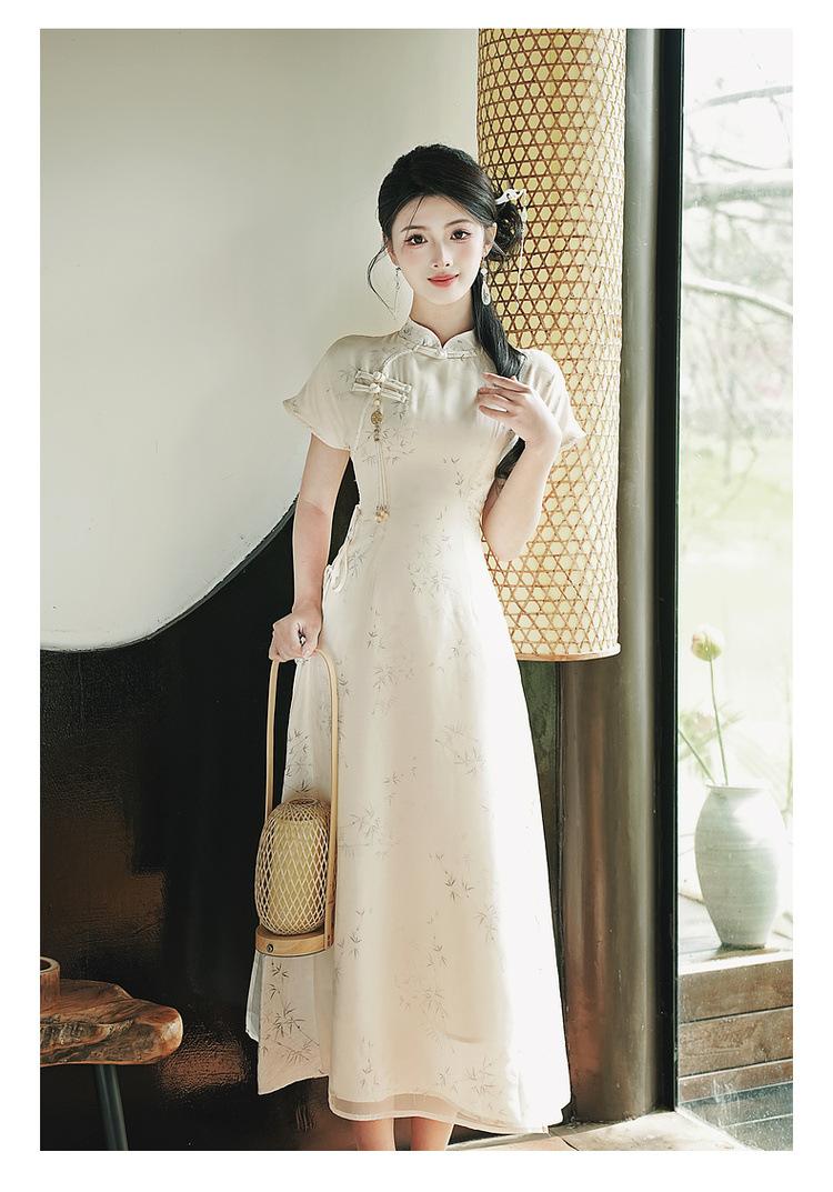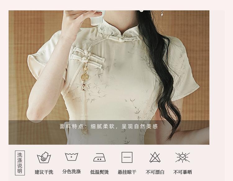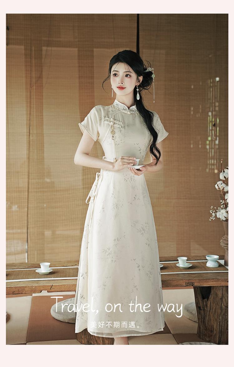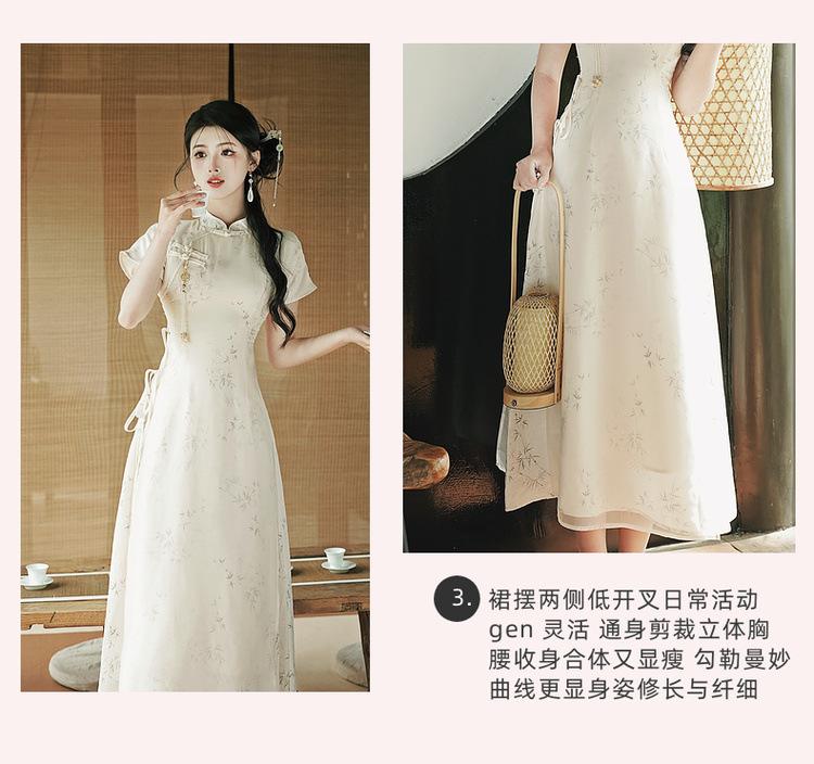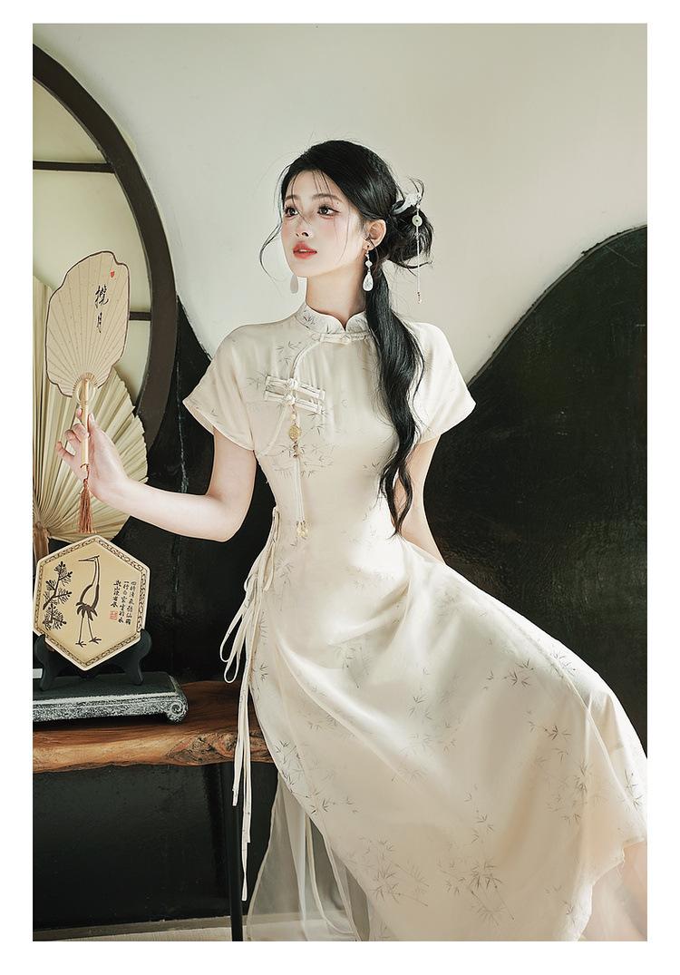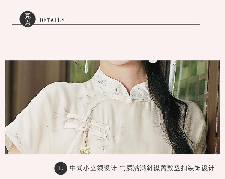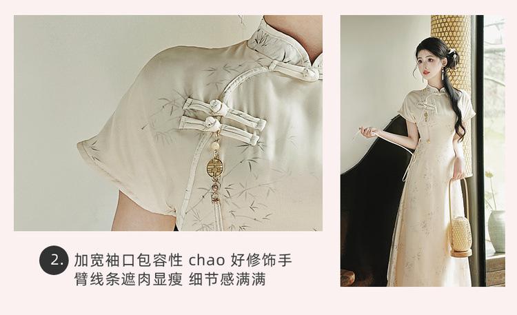 Botón Hoja de Bambú Zen de Tinta Vestido Cheongsam Mejorado Estilo Chino Nuevo