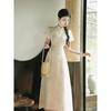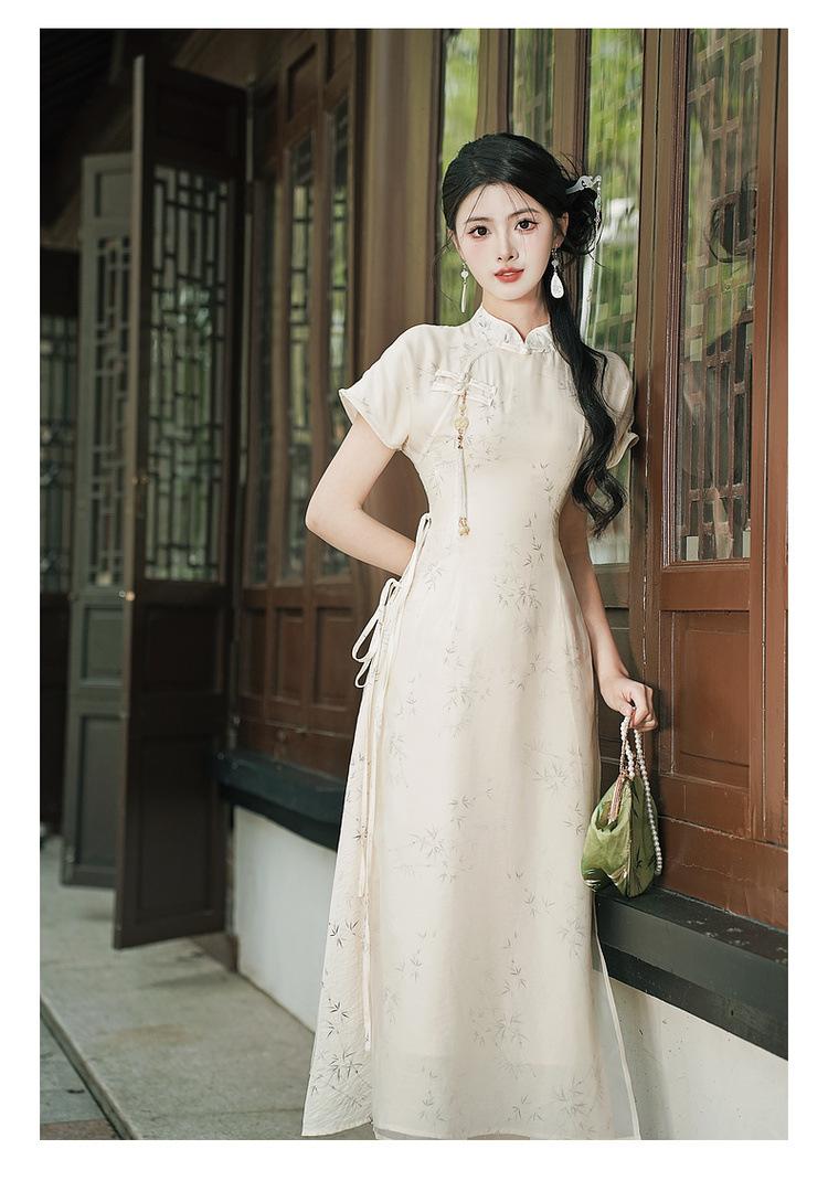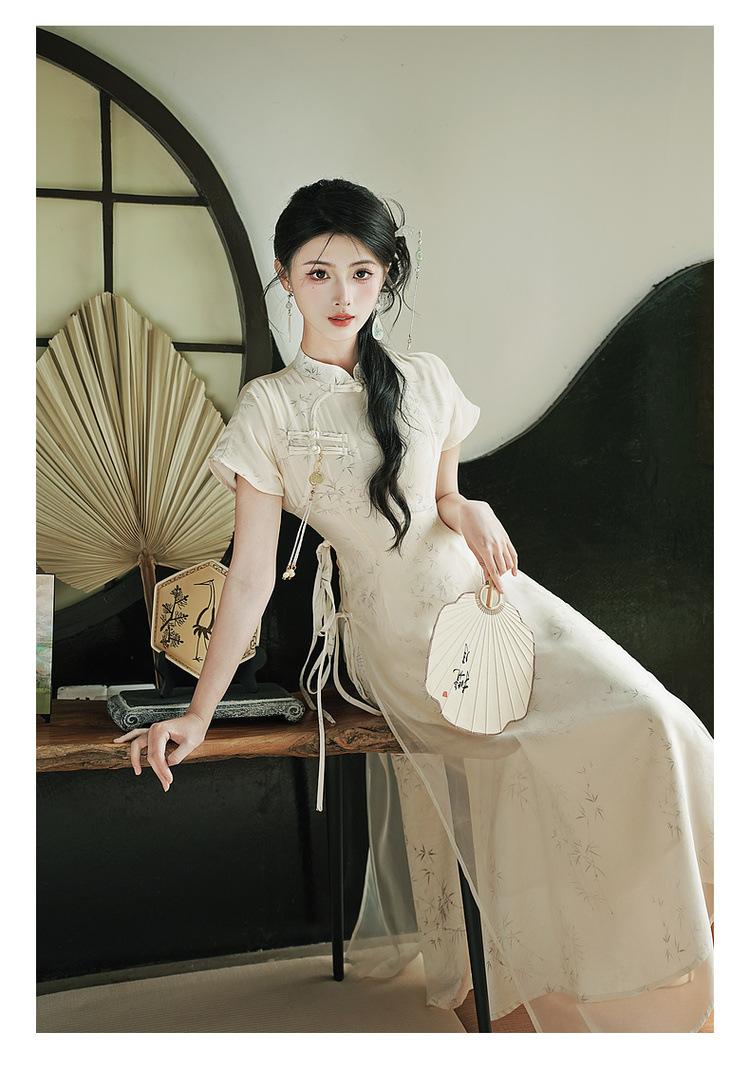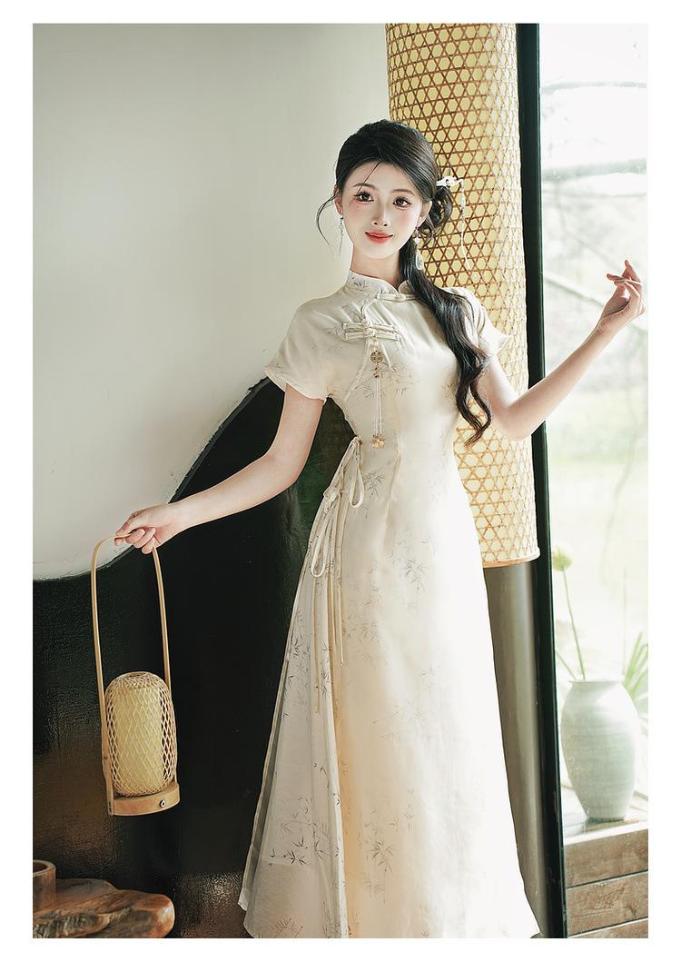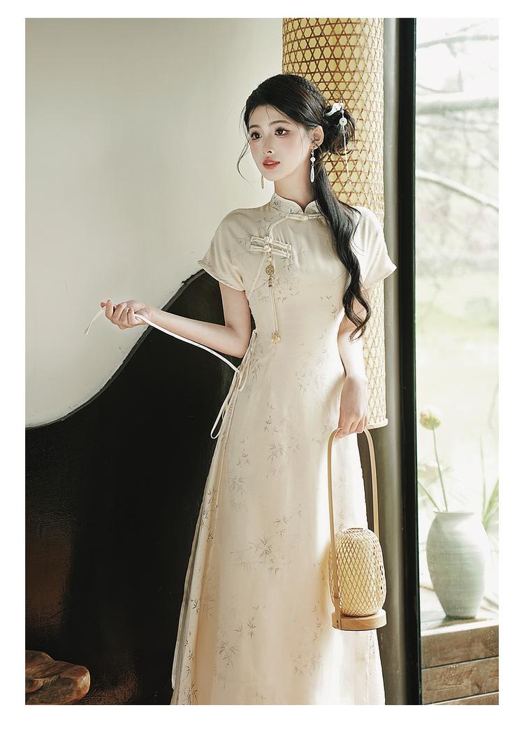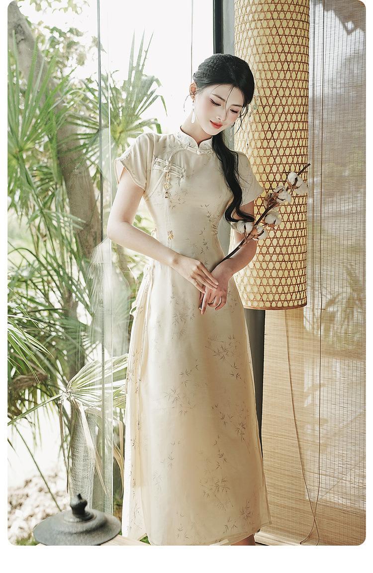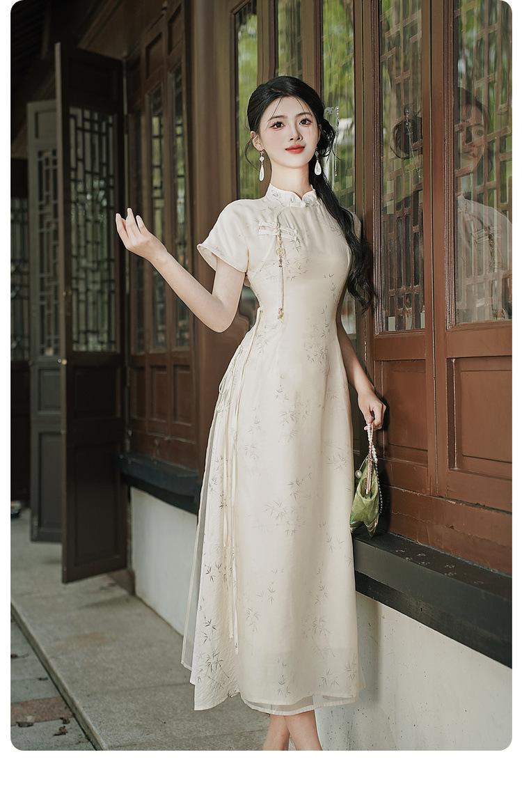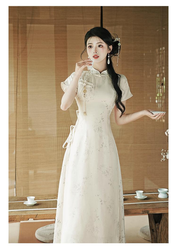 Botón Hoja de Bambú Zen de Tinta Vestido Cheongsam Mejorado Estilo Chino Nuevo