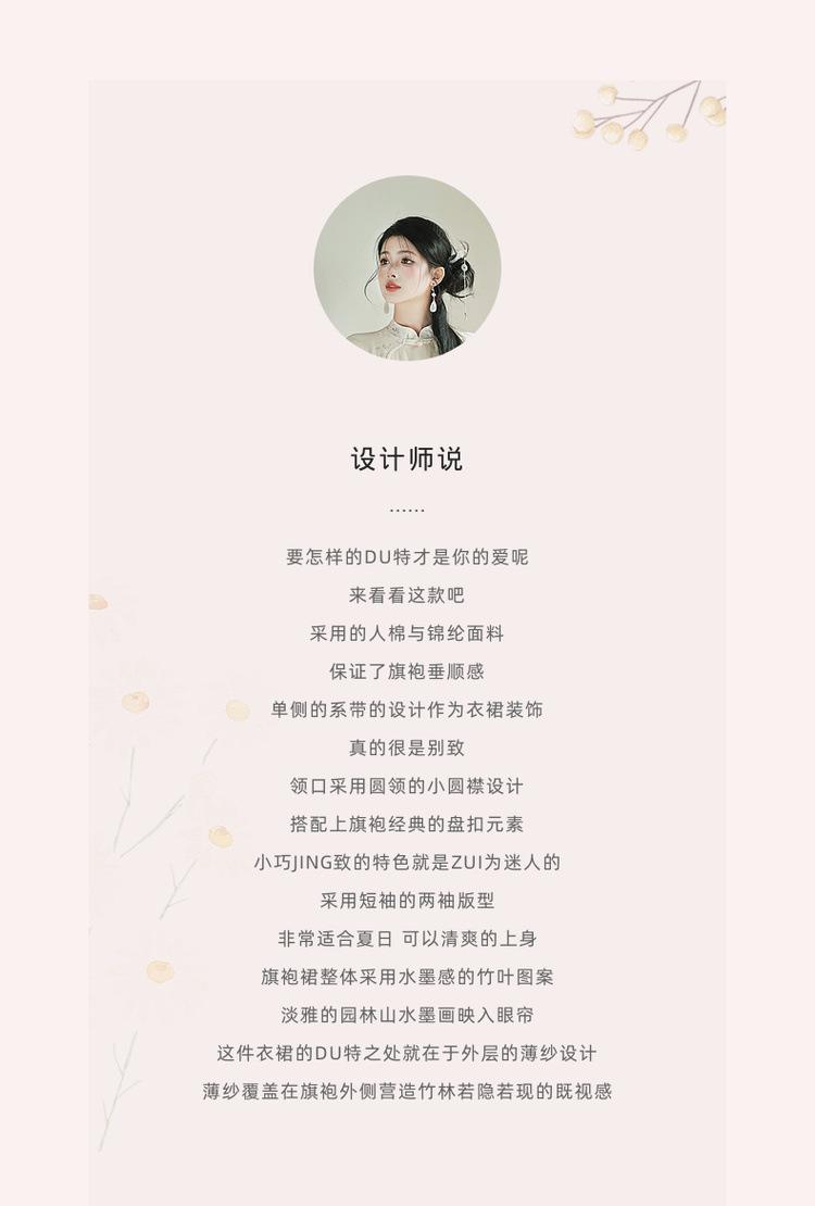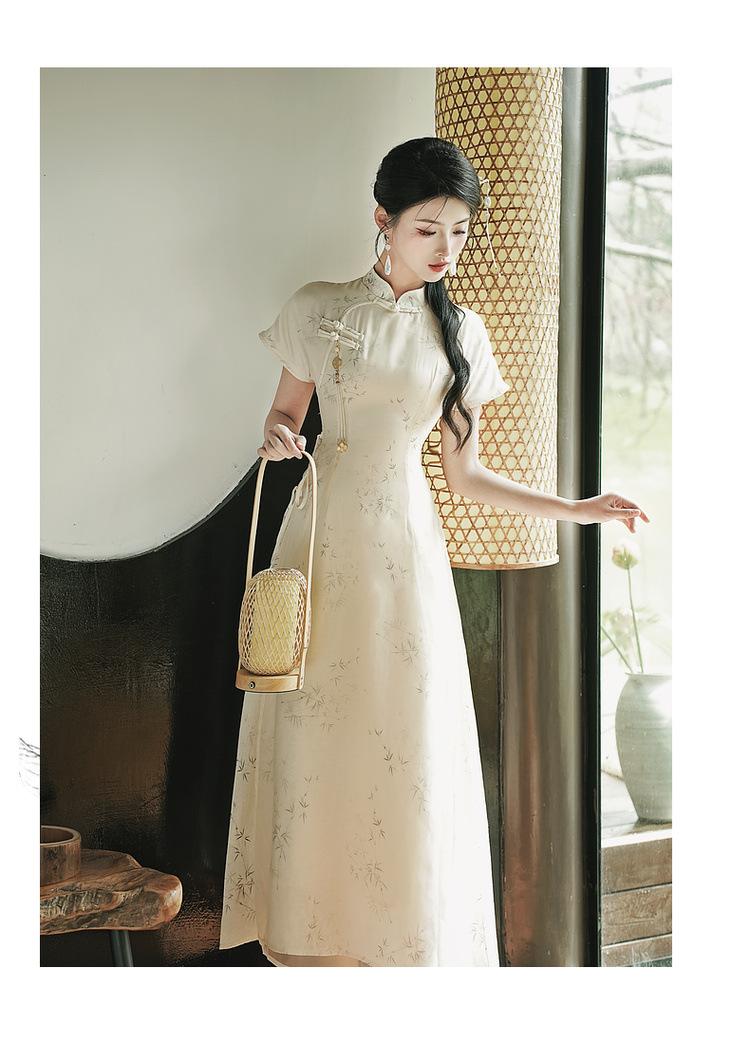 Ink-like bamboo leaf cheongsam, Cheongsam + pendant