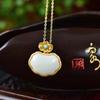 Collar con colgante de jade natural Hotan con incrustaciones de candado Ruyi, estilo vintage, dulce, personalizado, con cadena de clavícula de ágata roja del sur