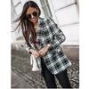 2020 Comercio exterior europeo y americano AliExpress eBay otoño e invierno Nueva Moda manga larga traje de doble botonadura abrigo a cuadros ropa de mujer