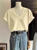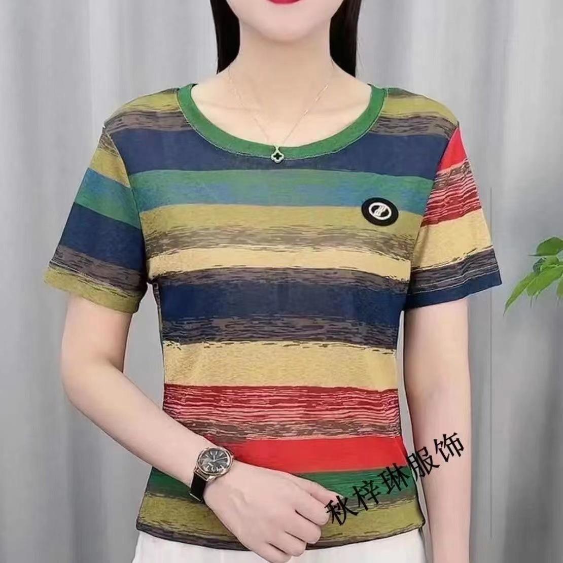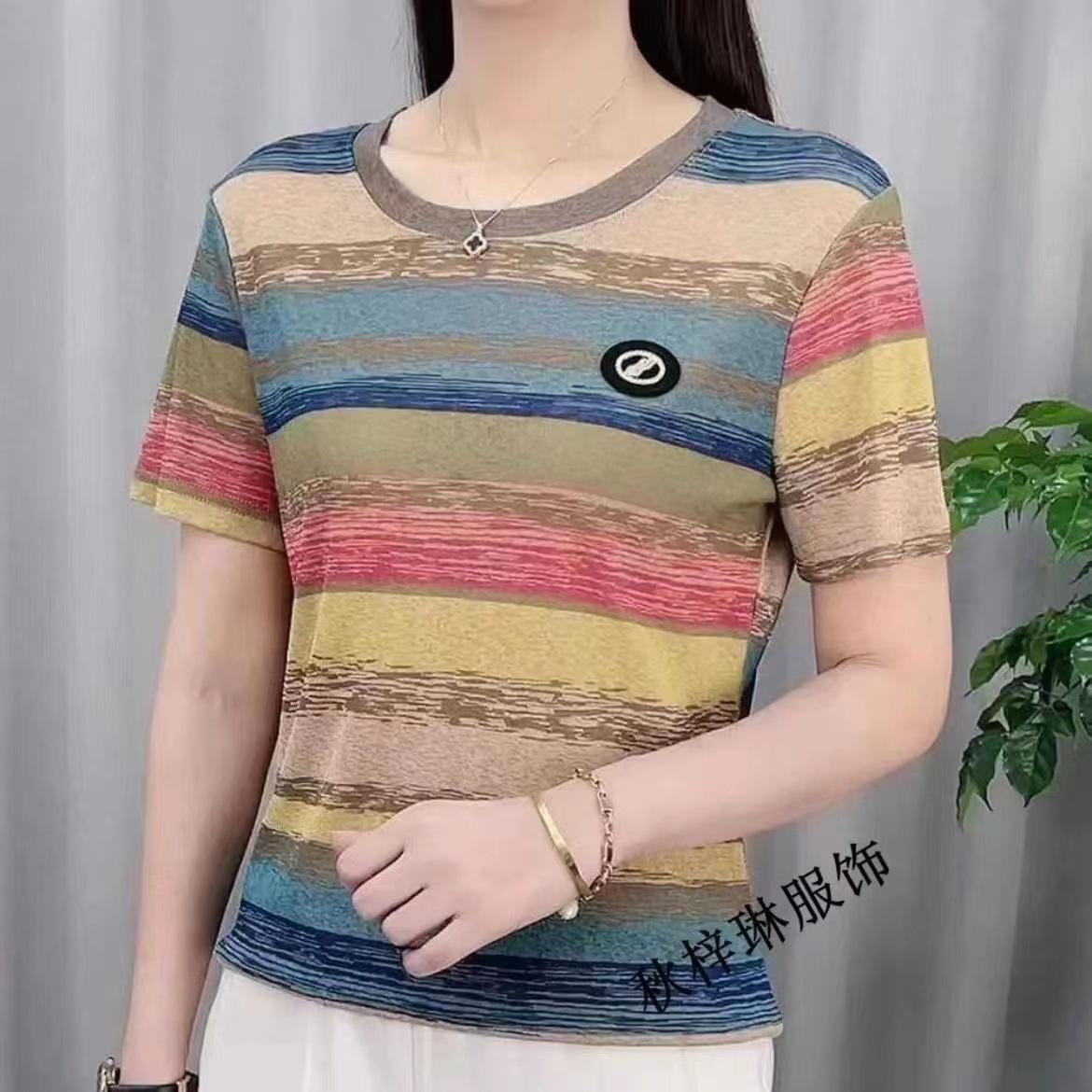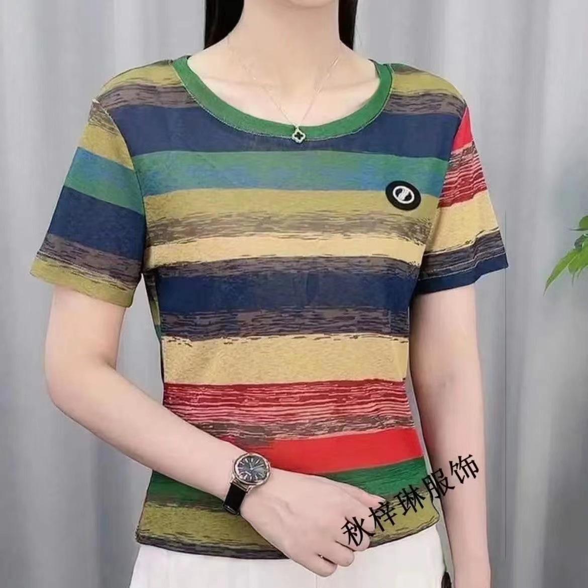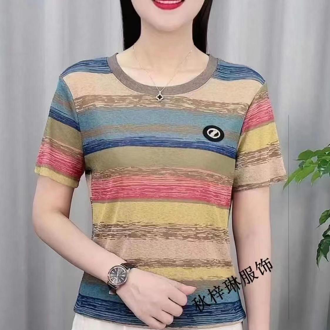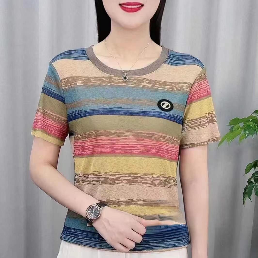 Camiseta de manga corta elegante con costuras a la moda de verano para mujer, blusa holgada y adelgazante para mamá, top elegante que combina con todo.