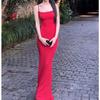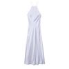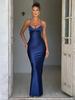 Otoño Nueva Moda Espalda Descubierta Amazon Transfronterizo Vestido Sexy de Tirantes Satín Correa Cintura Vestido Largo