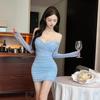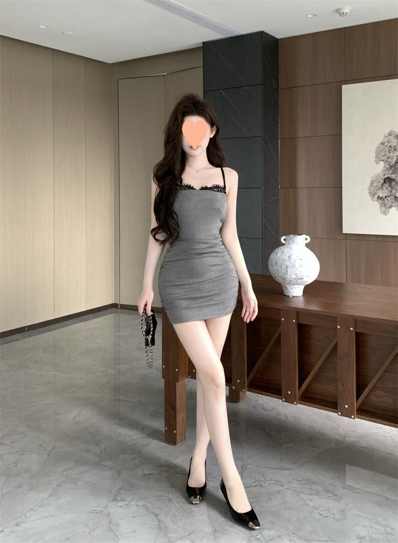 Yujie encaje strapless tirantes ajustado adelgazante puro chica caliente vestido corto cadera ropa de mujer