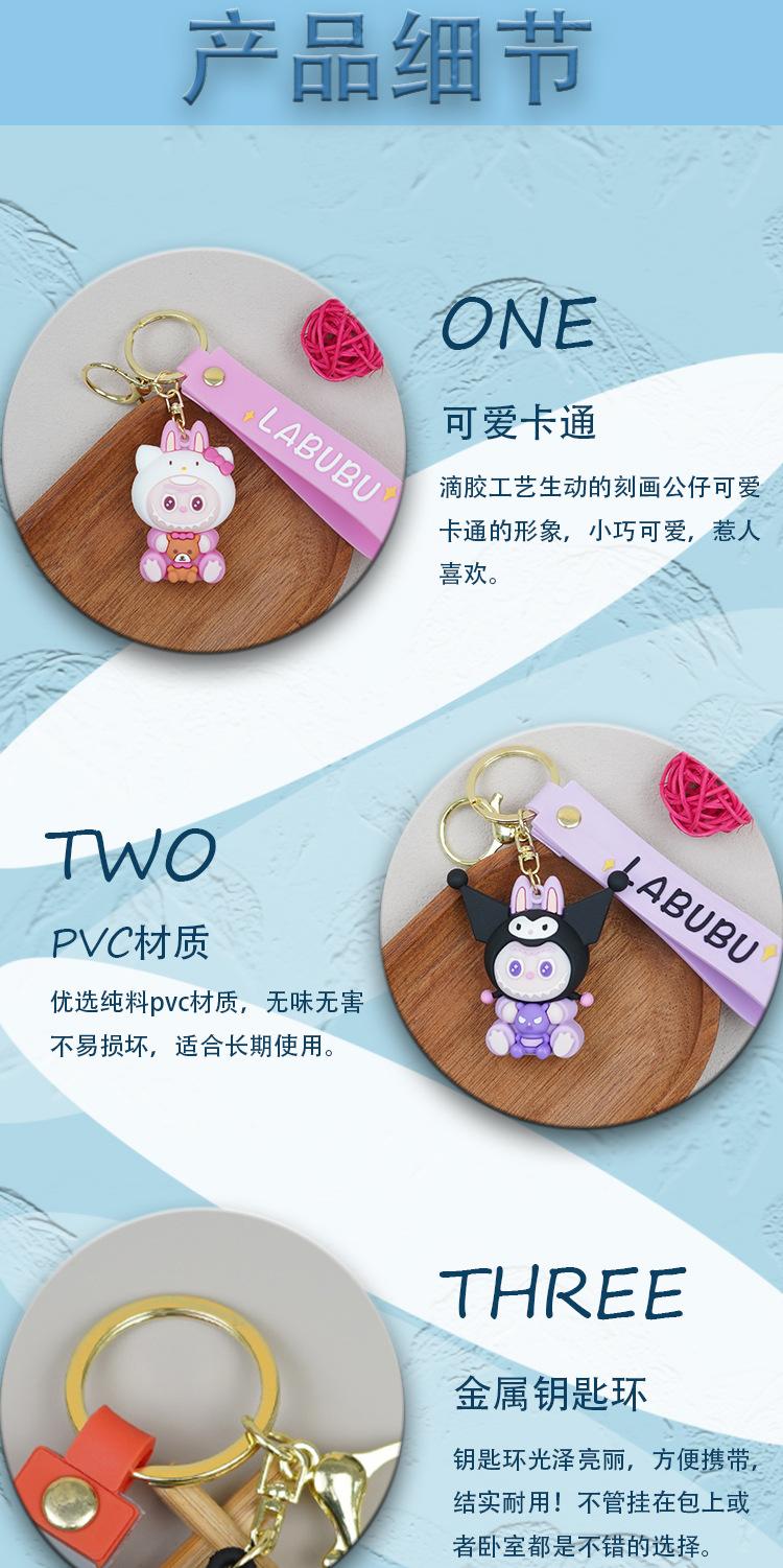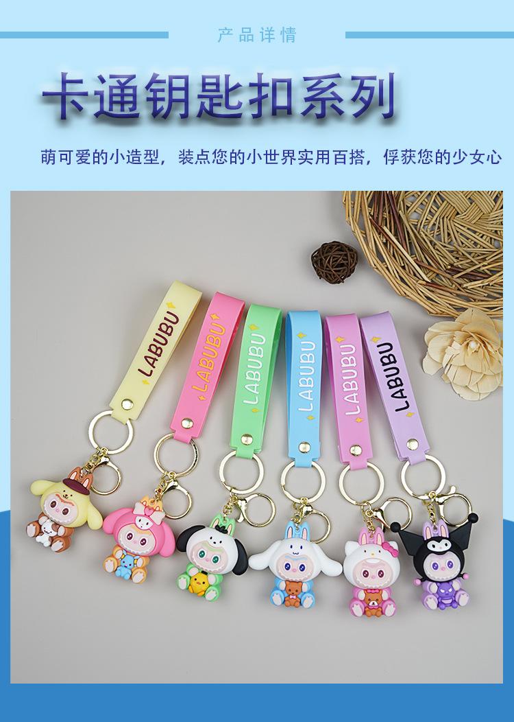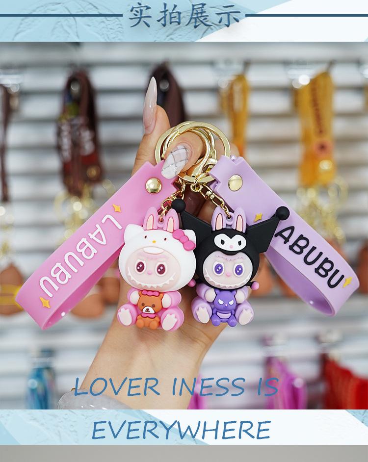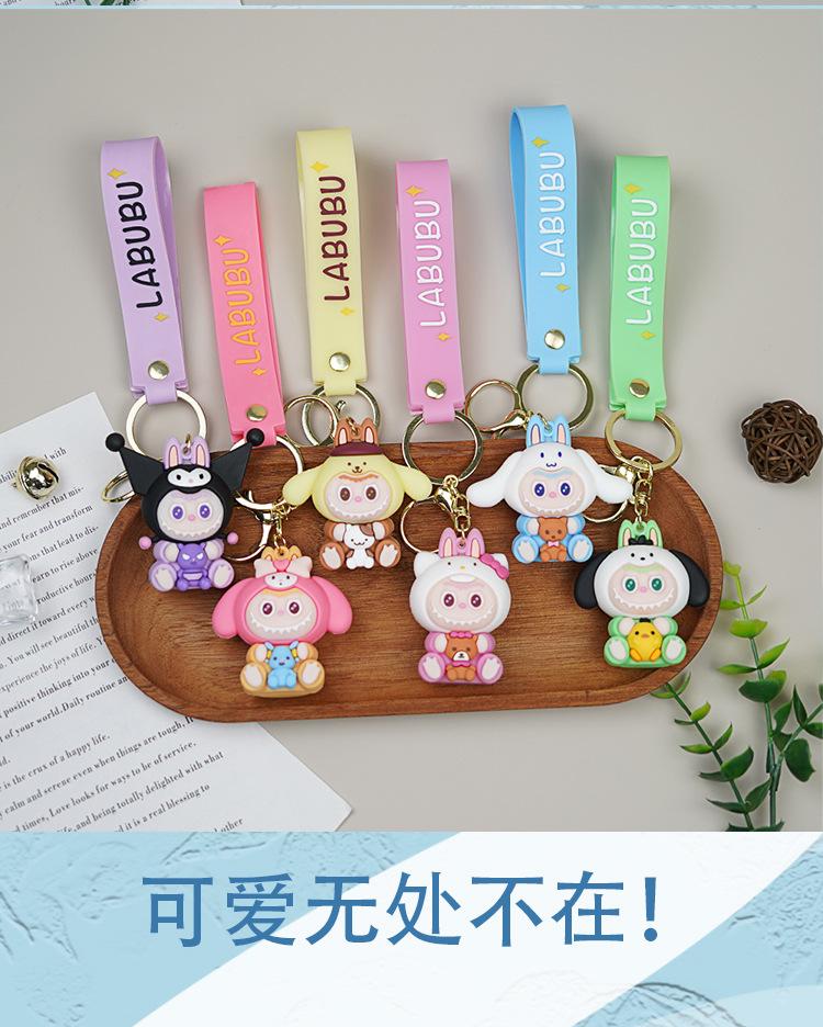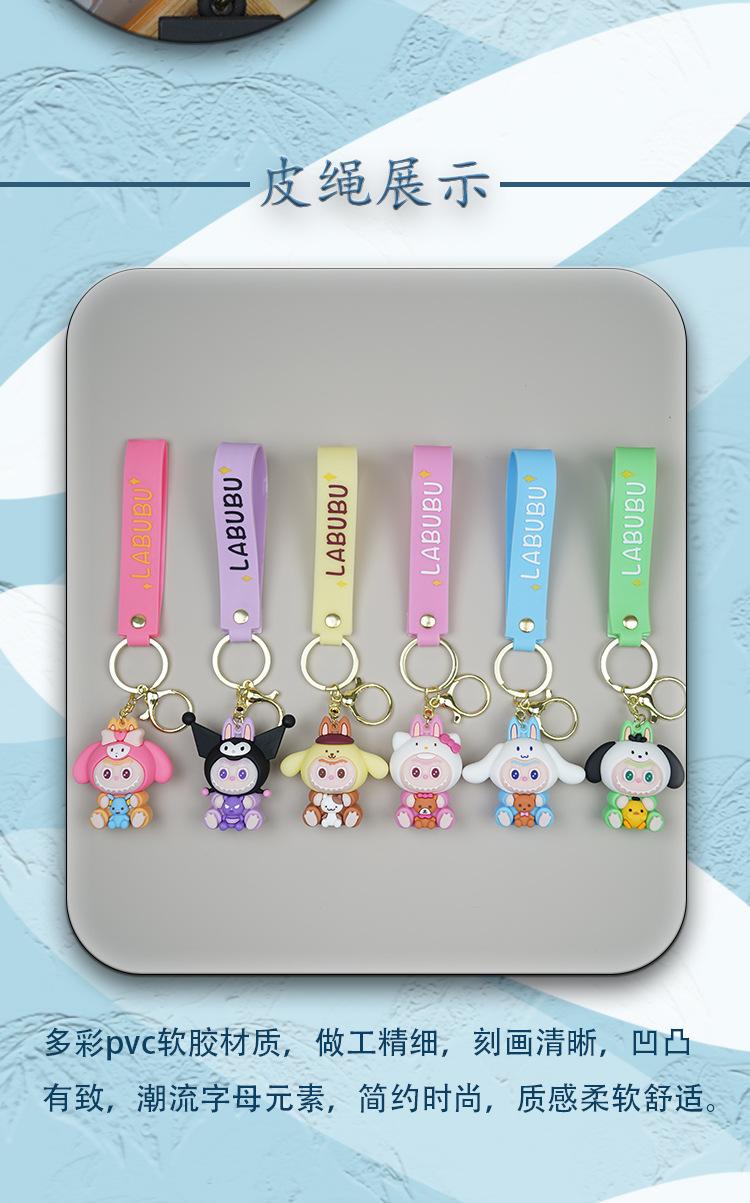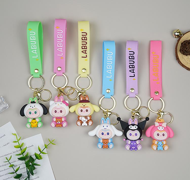 Creative cartoon labubu little sheep doll keychain couple school bag pendant car key chain gift wholesale fact...