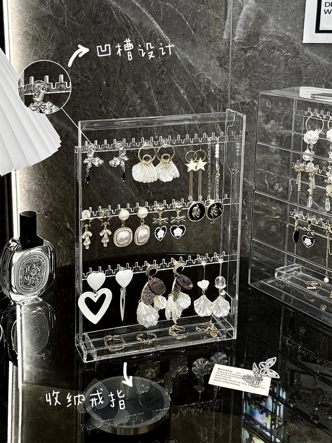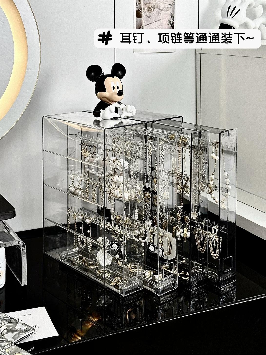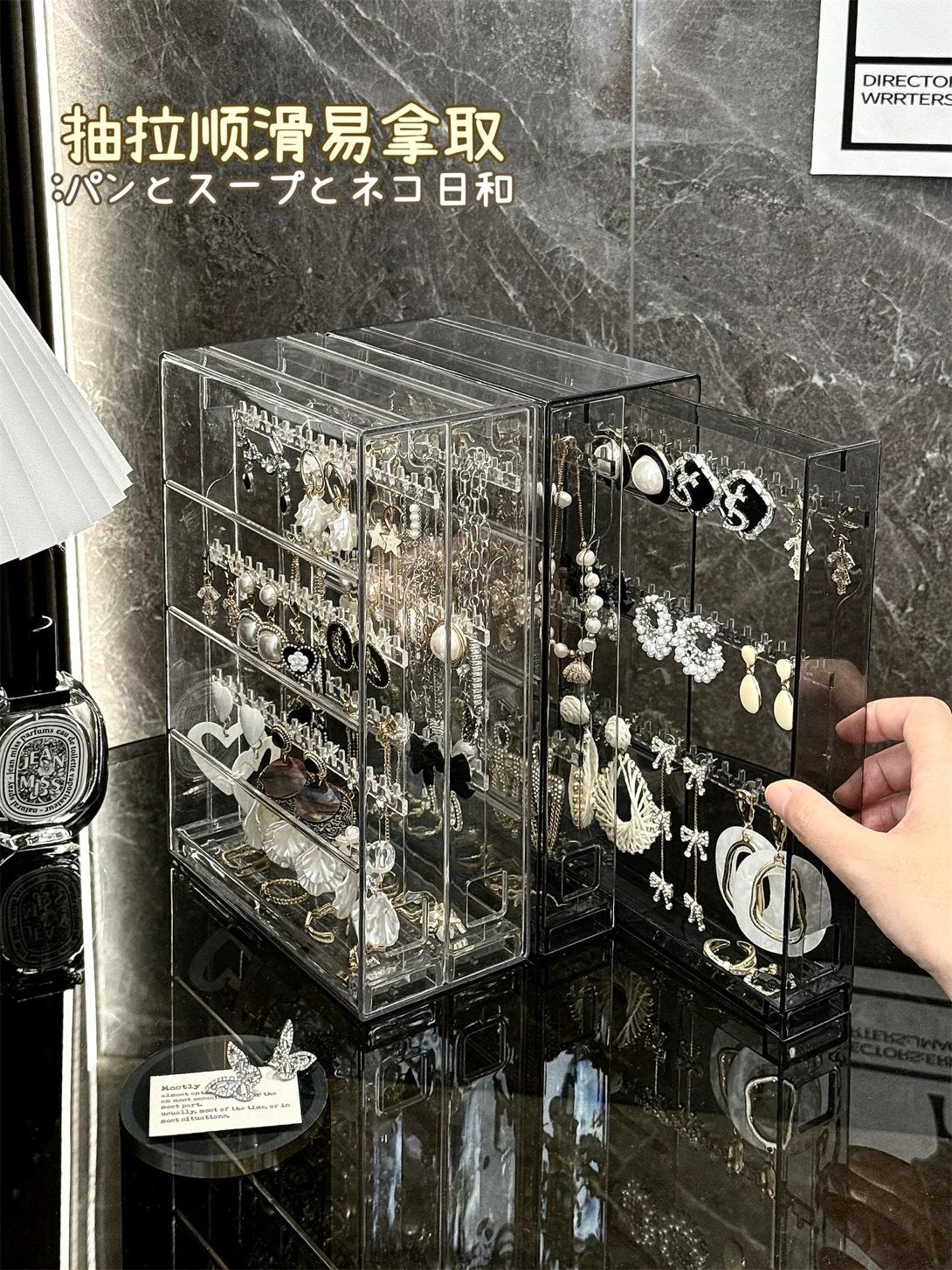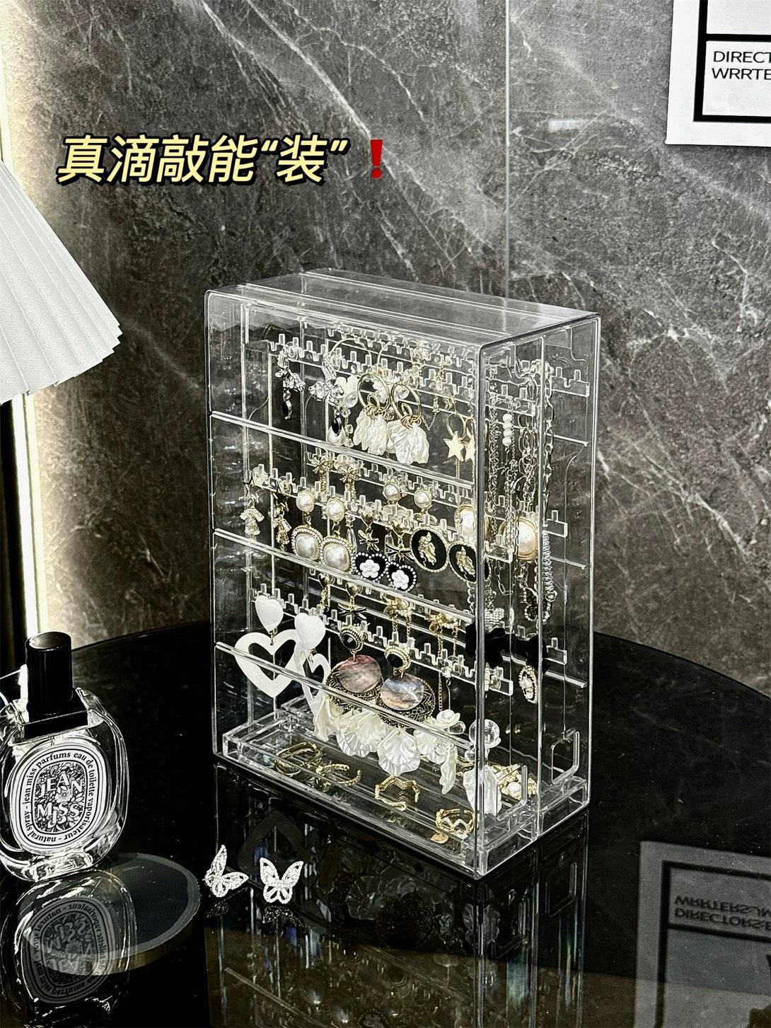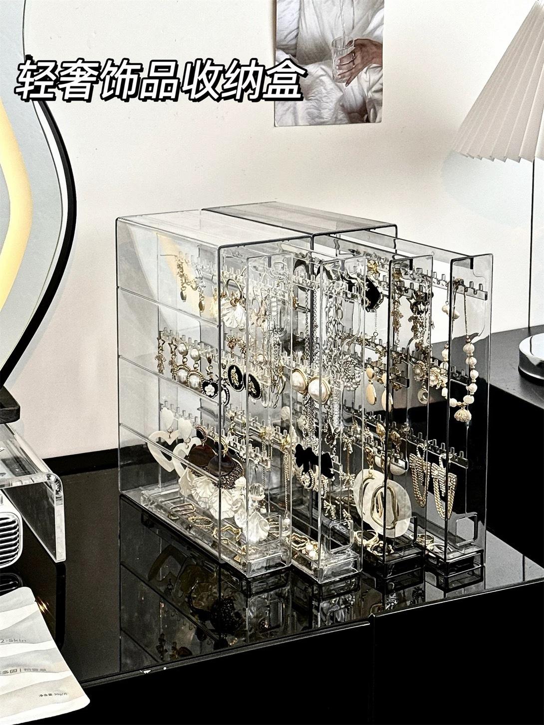 Nuevo estante de almacenamiento de joyas de plástico transparente de escritorio, caja para collares y pulseras, a prueba de polvo, caja de almacenamiento para aretes y joyas.