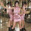 Vestido ajustado de manga corta con cuello en U y abertura en la cadera para mujer, estilo transfronterizo de verano europeo y americano, 2024
