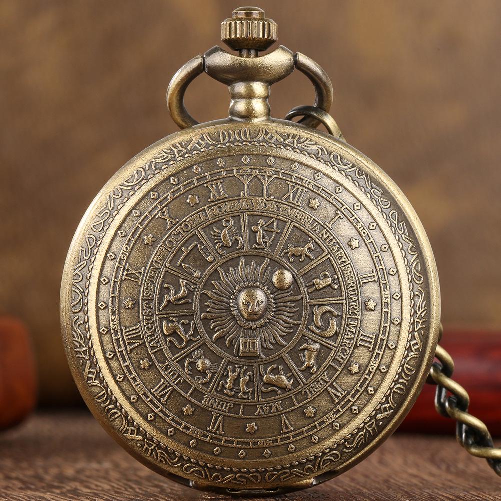Compra Reloj de cuarzo más vendido de comercio exterior, retro verde antiguo, 12 constelaciones, conmemorativo, nostálgico, colgante, reloj de bolsillo, una generación de cabello al por mayor en Joom.pro