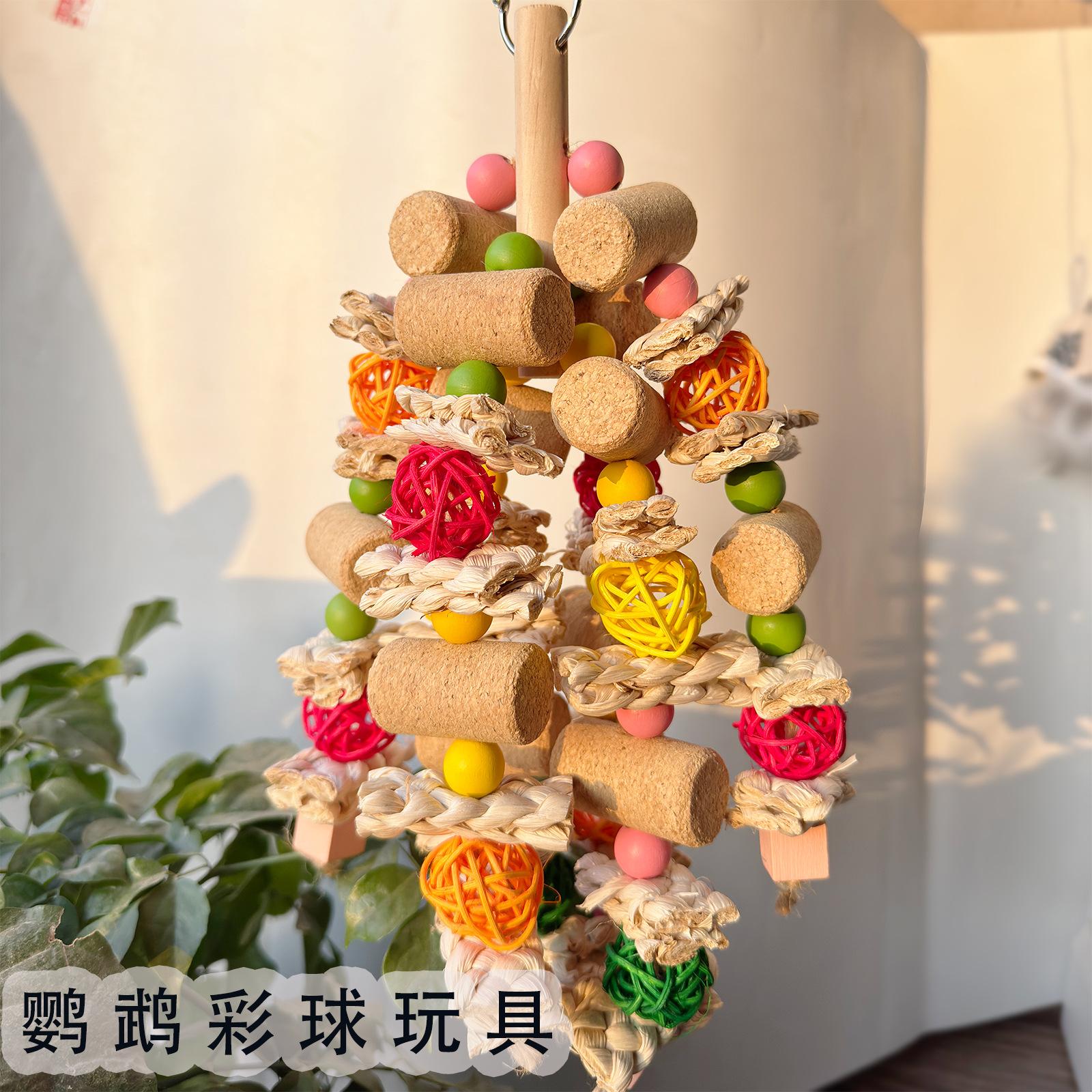 Juguete para Morder Loro Color Piel de Maíz Bola de Caña Suministros para Aves Ave Grande Decorativo Colgante Jaula para Pájaros Venta al por Mayor