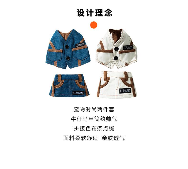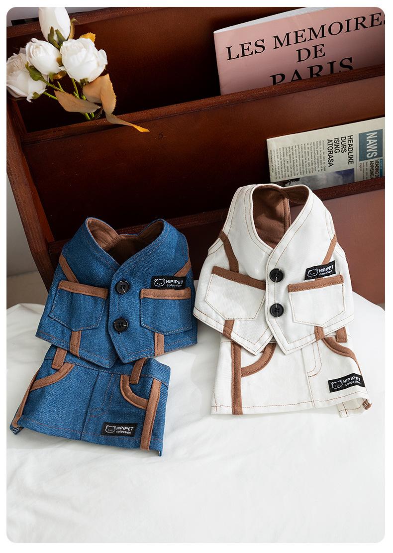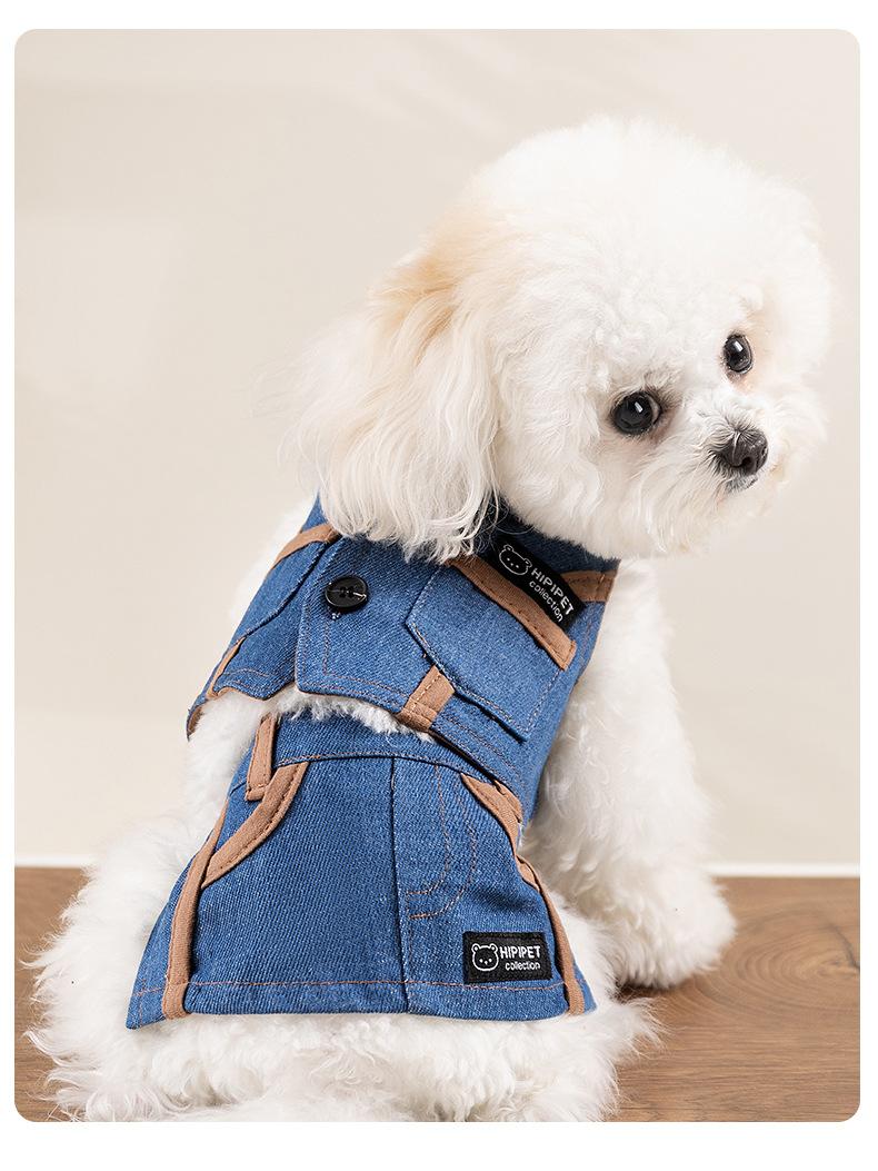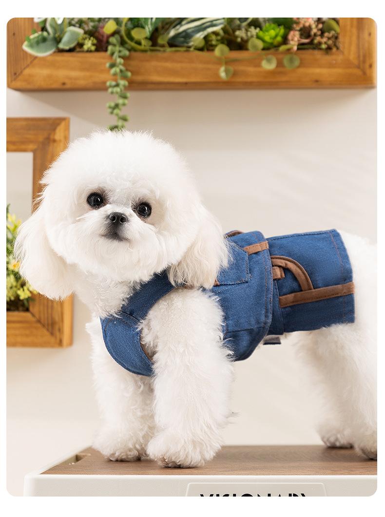Ropa para Perro Primavera y Verano Estilo Retro Chaleco de Mezclilla Conjunto de Dos Piezas para Perros Pequeños y Medianos Teddy Bichon Ropa para Perro Mascota