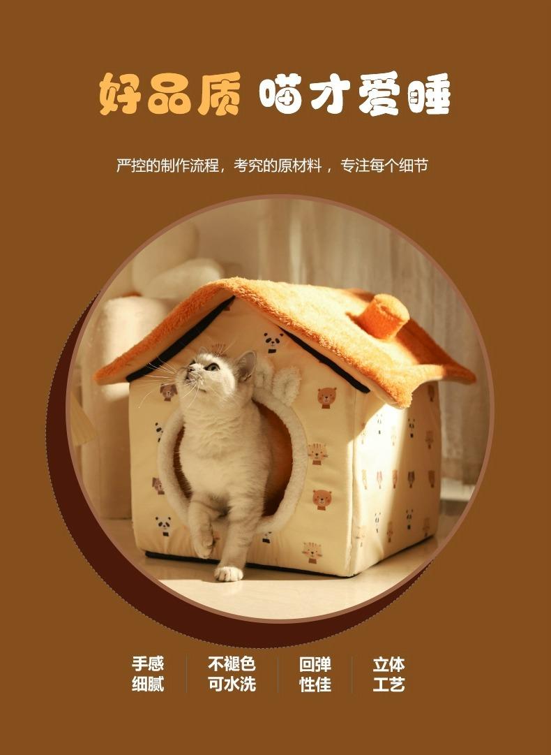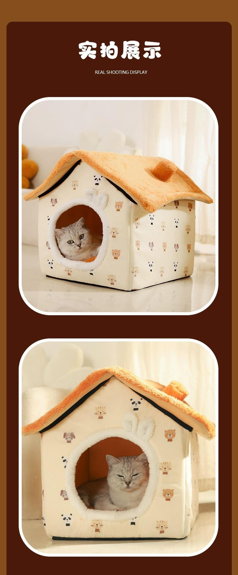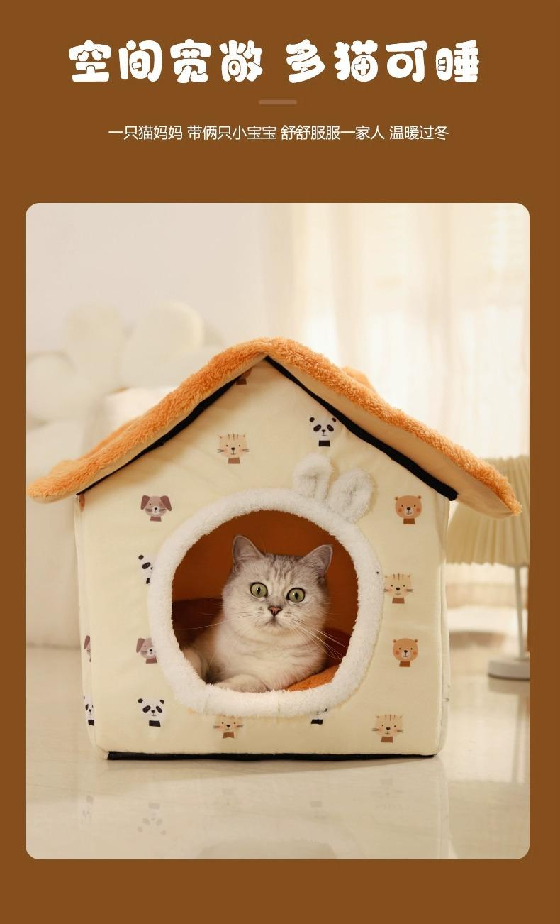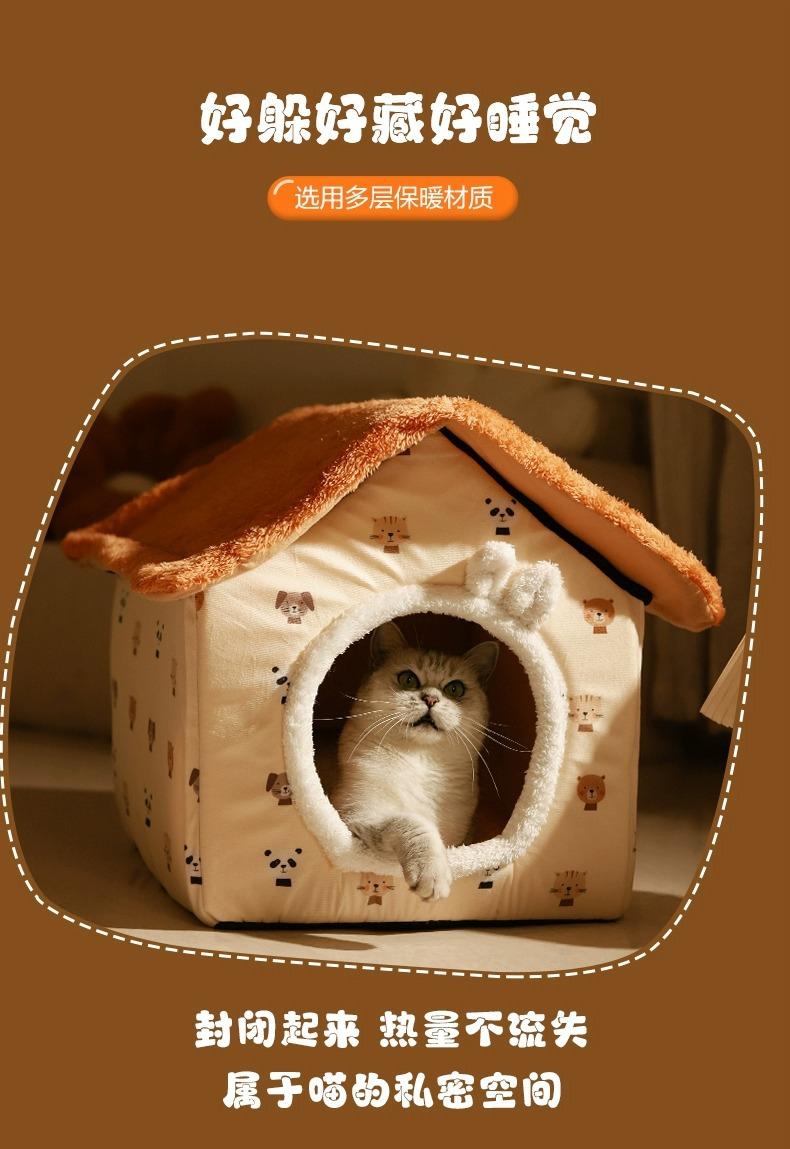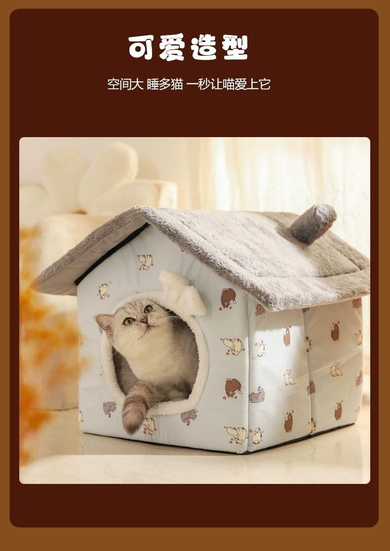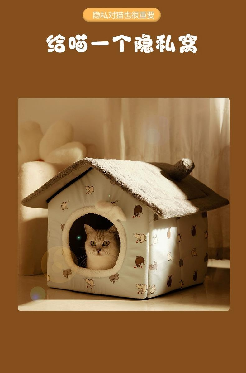 Nido para gatos, casa universal cerrada para las cuatro estaciones, caseta extraíble y lavable, caseta cálida para perros y gatos en invierno.
