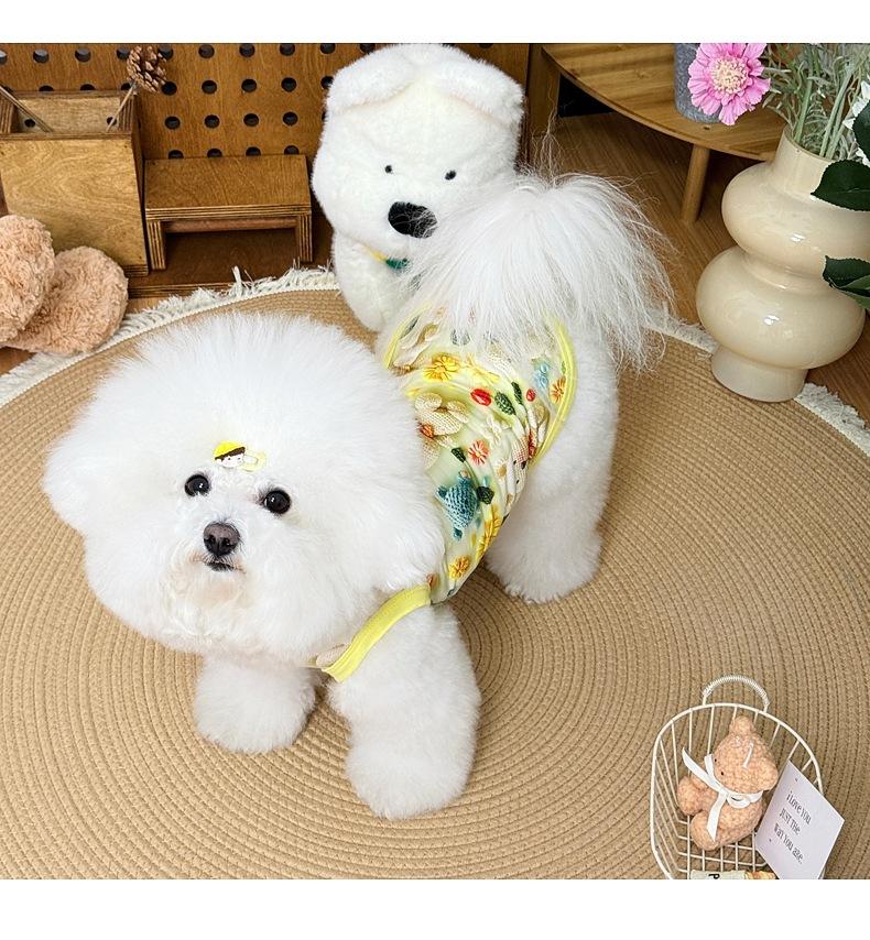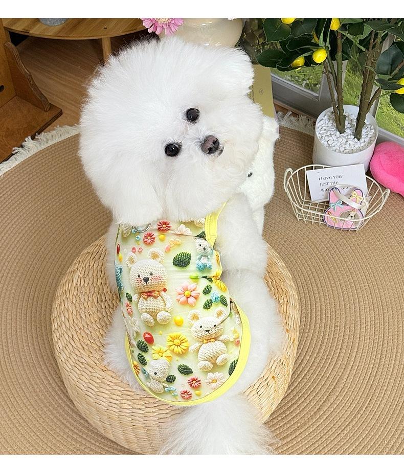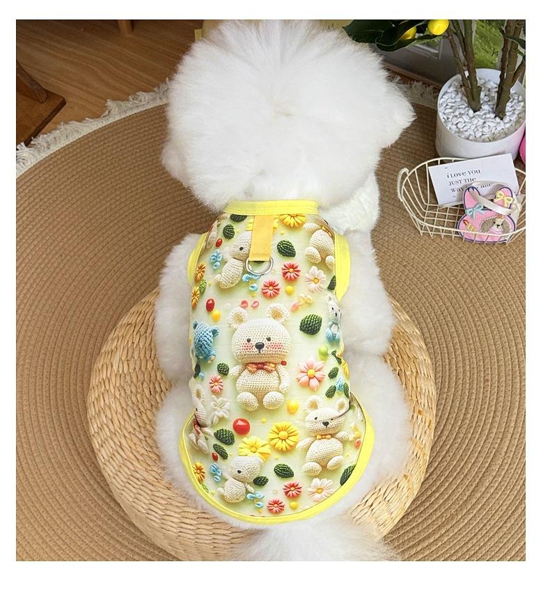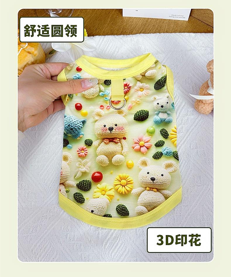 Ropa nueva para mascotas ropa para gatos perros impresión tridimensional lindo viento sedoso transpirable amigable con la piel anti-pelusa ropa de primavera