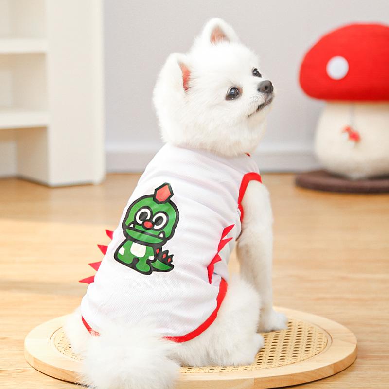 Primavera y verano nuevo perro gato mascota gato ropa suministros para perros chaleco de malla dinosaurio suministros para exteriores protección solar fabricantes