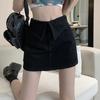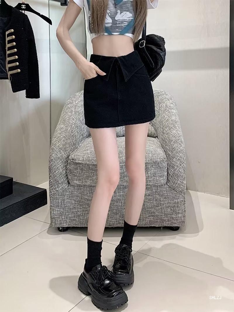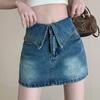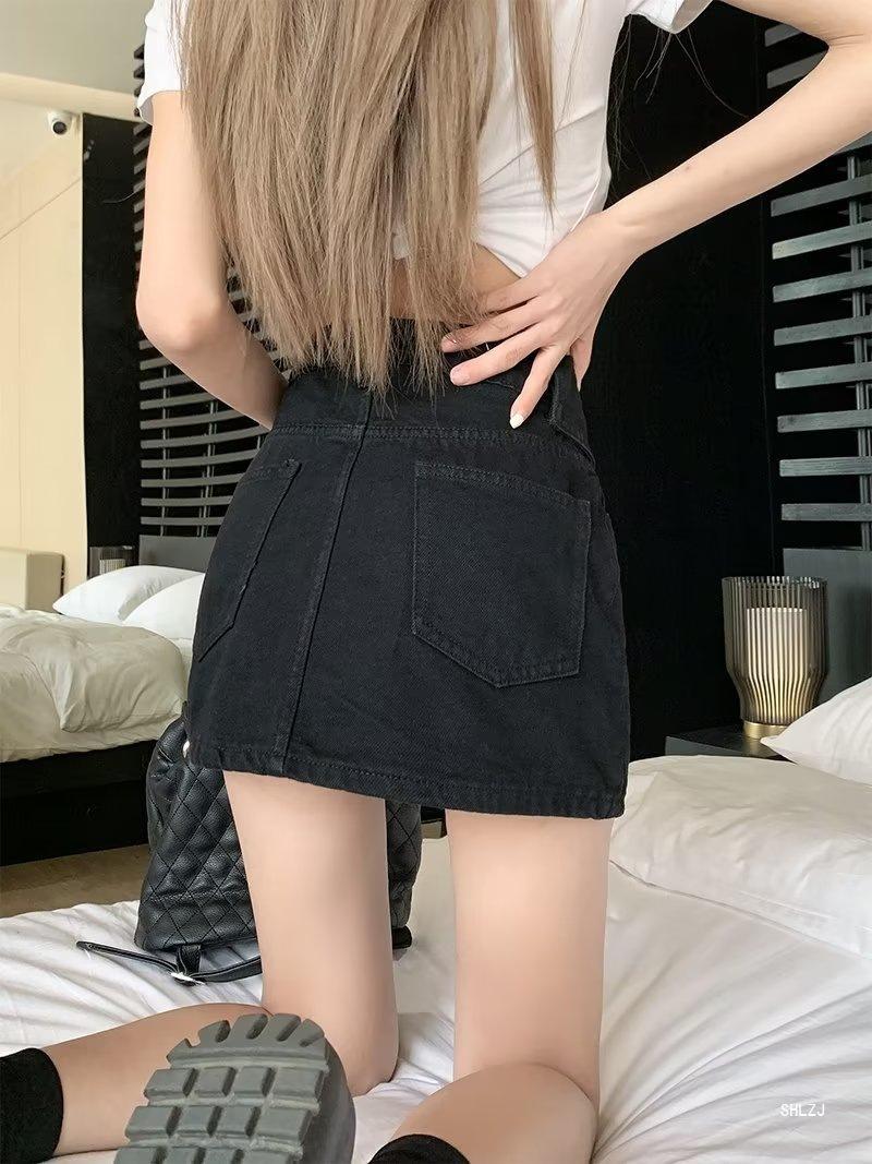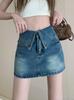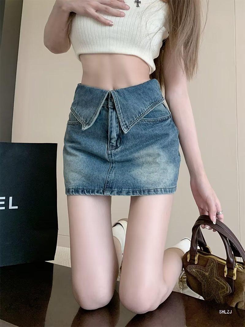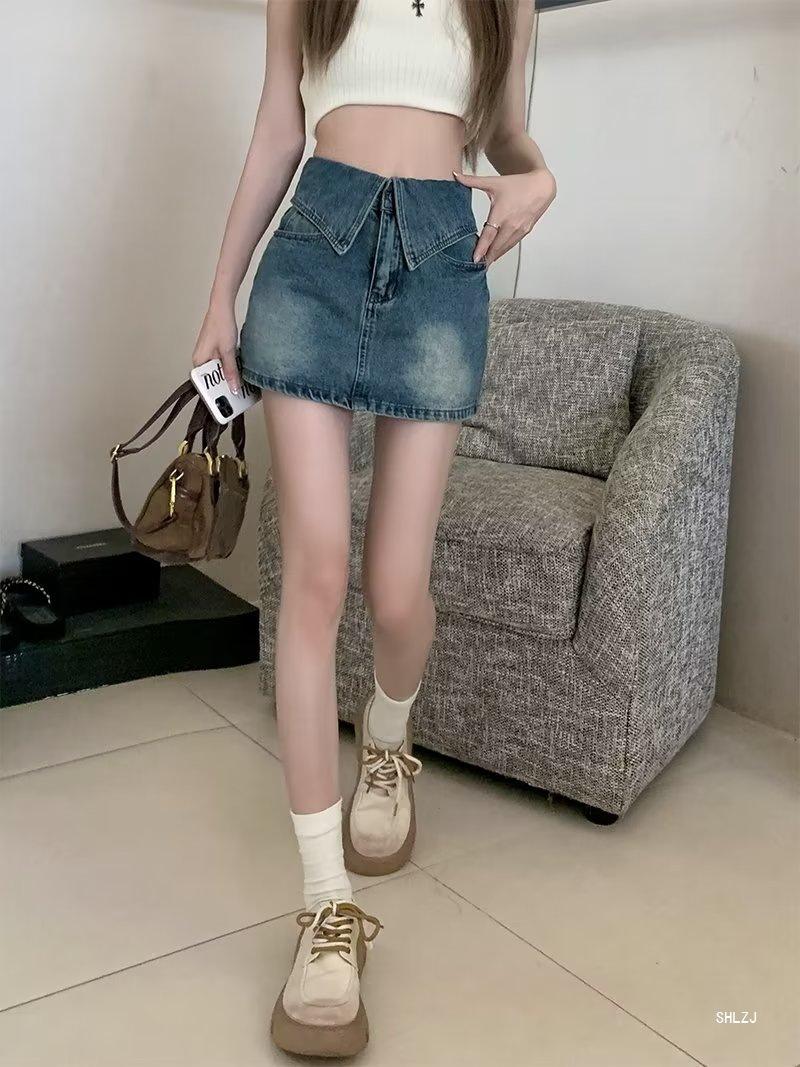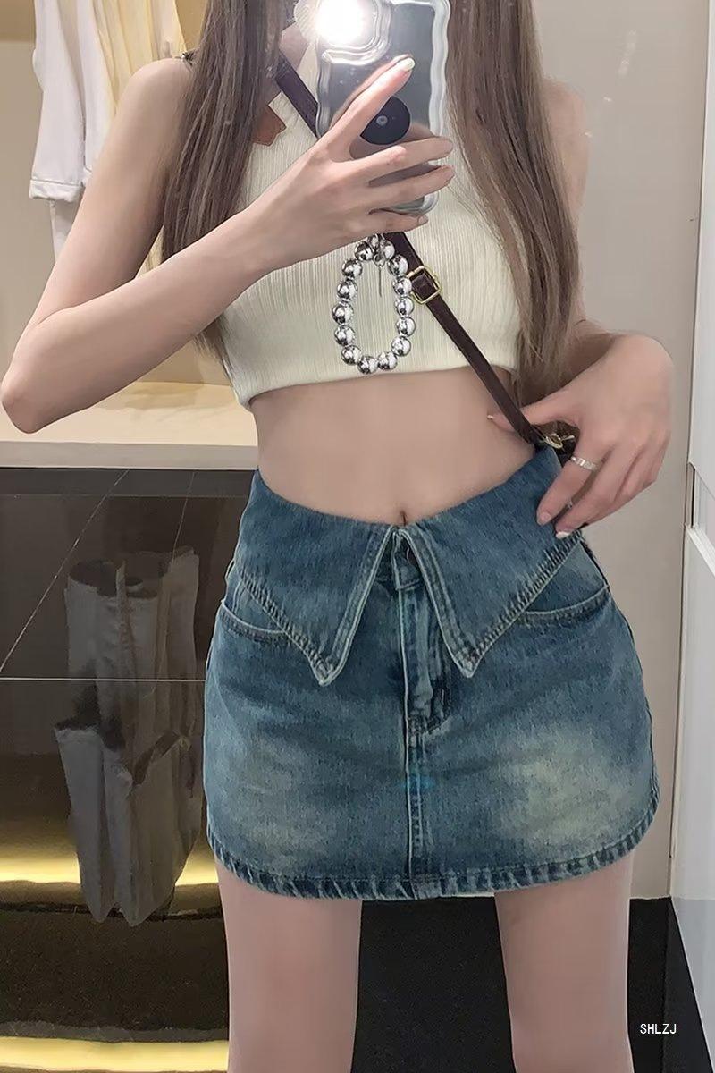 Falda corta de verano a la moda para mujer, de cintura alta, estilo retro, adelgazante, antideslumbrante, de mezclilla, de media longitud a la cadera.