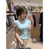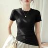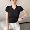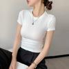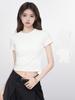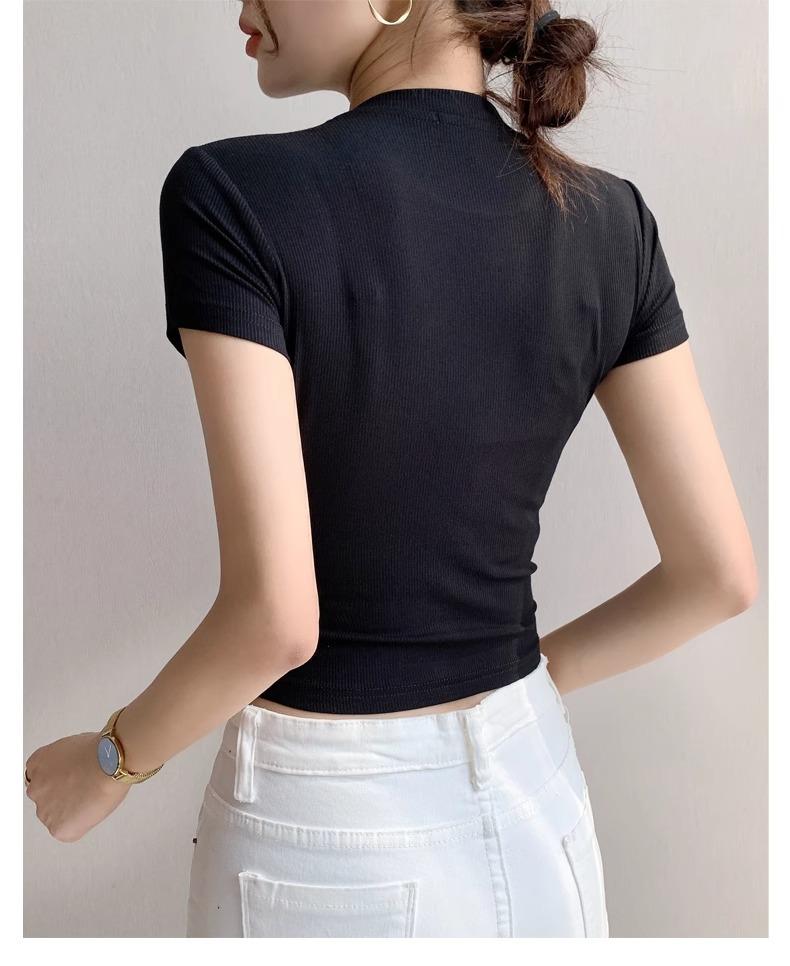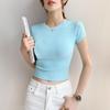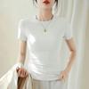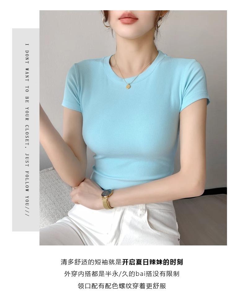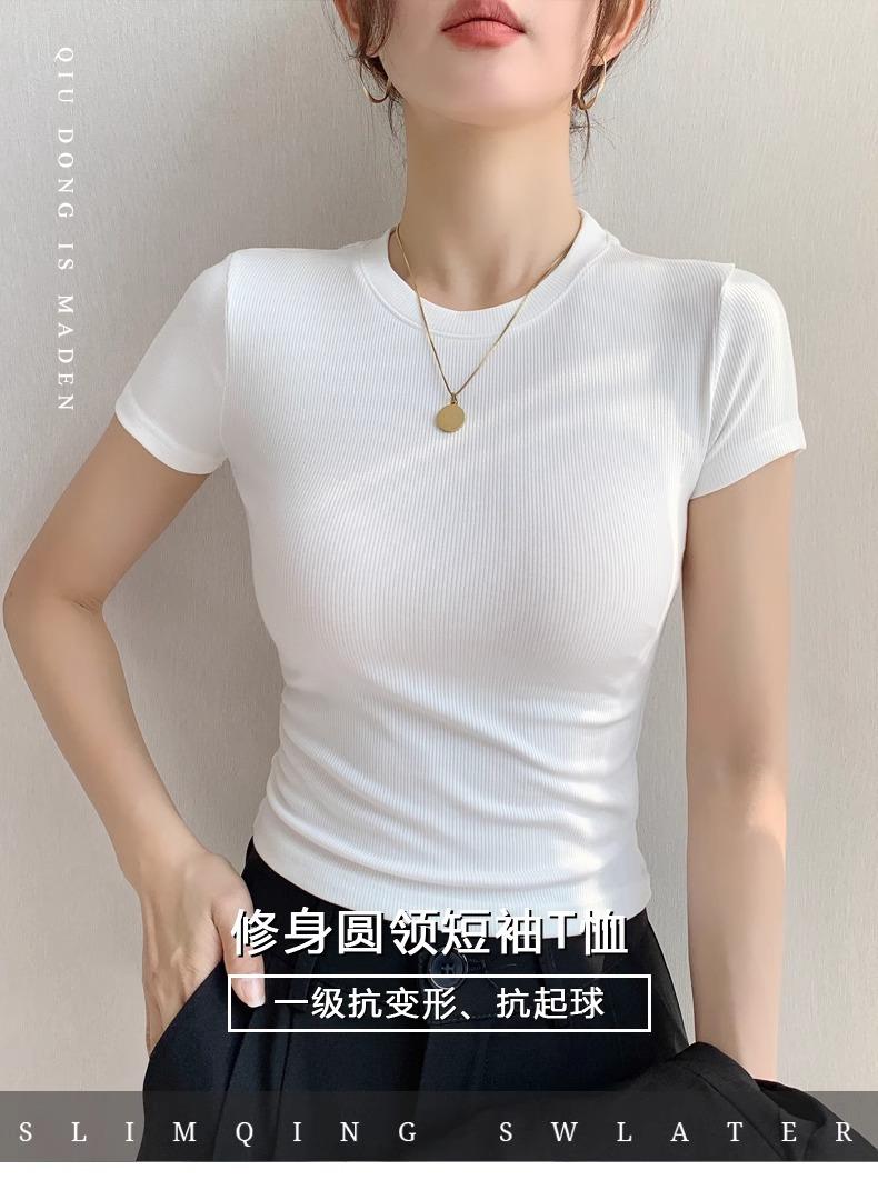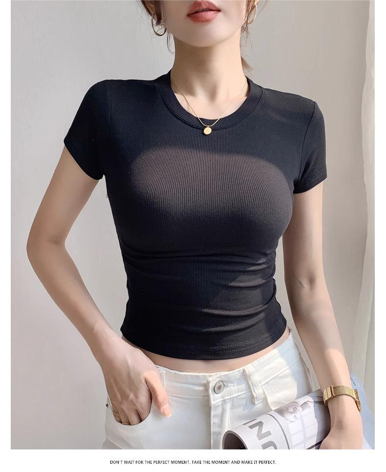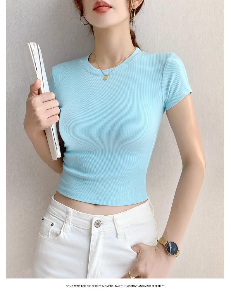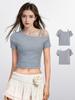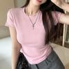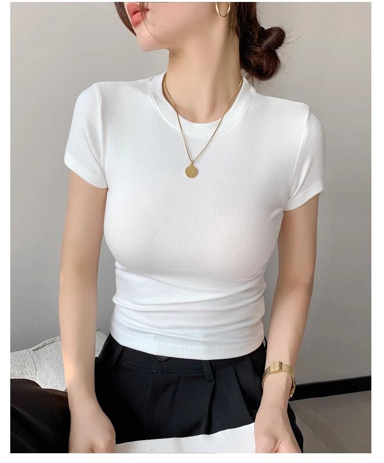 Camiseta de algodón de hilo regular 2025 para mujer, nueva camiseta de verano ajustada con cuello redondo y hombros descubiertos.