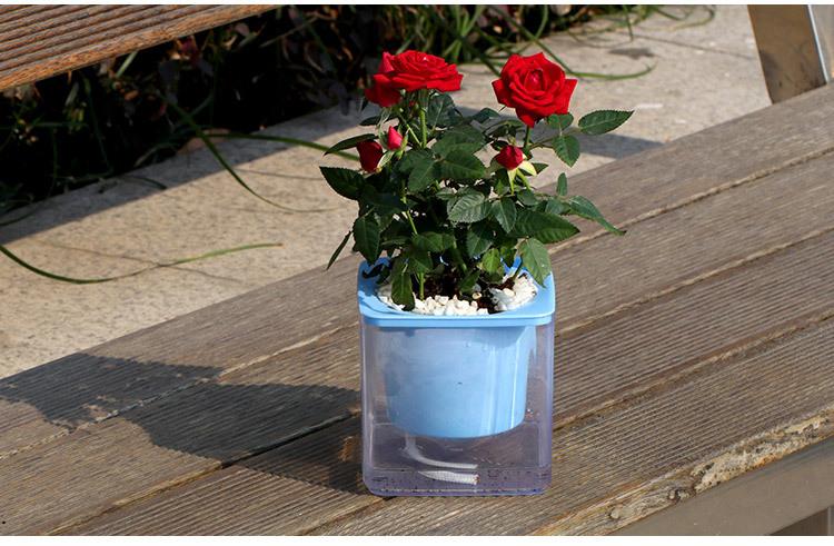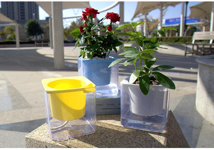 Maceta cuadrada totalmente transparente con autorriego, maceta mágica con forma de cubo transparente para almacenamiento de agua, maceta hidropónica de escritorio para flores y plantas verdes.