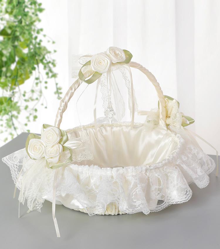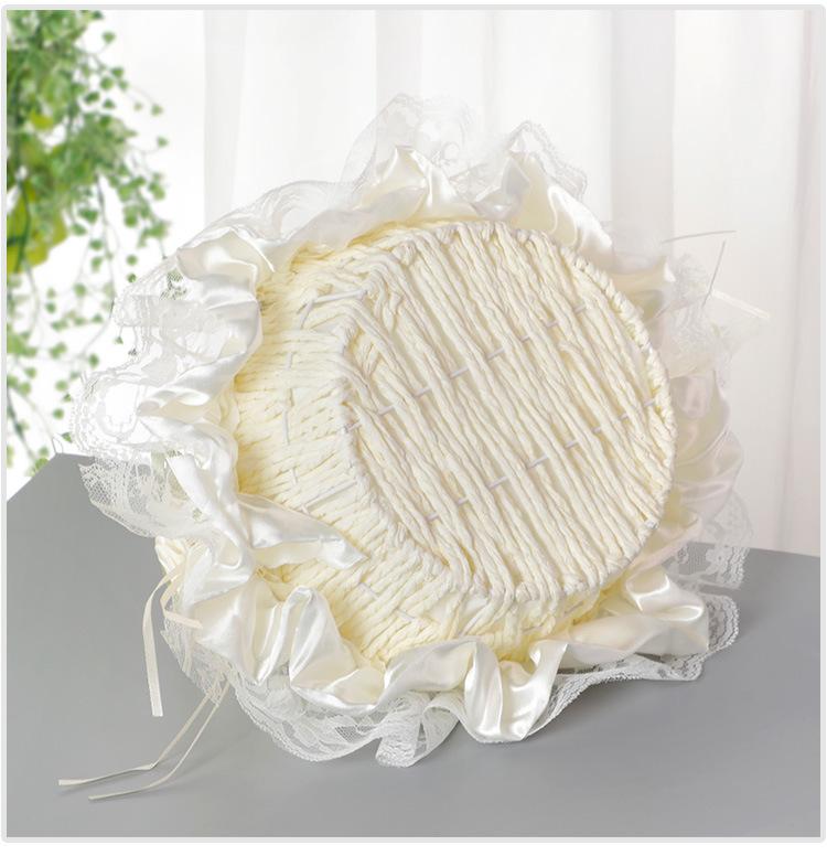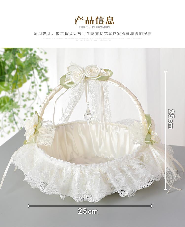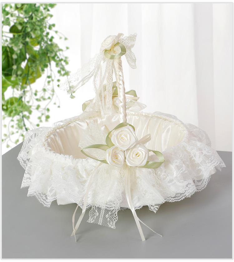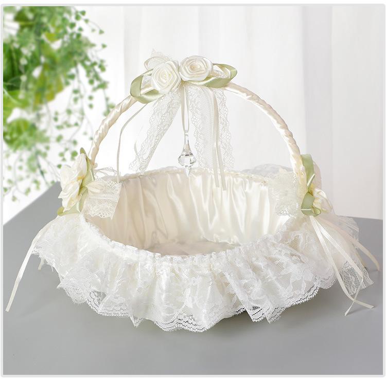 Suministros de boda, cesta de flores portátil para boda, cesta de flores para niña de las flores, cesta de flores para dama de honor, cesta decorativa con borde de encaje de ratán, envío de pétalos de simulación