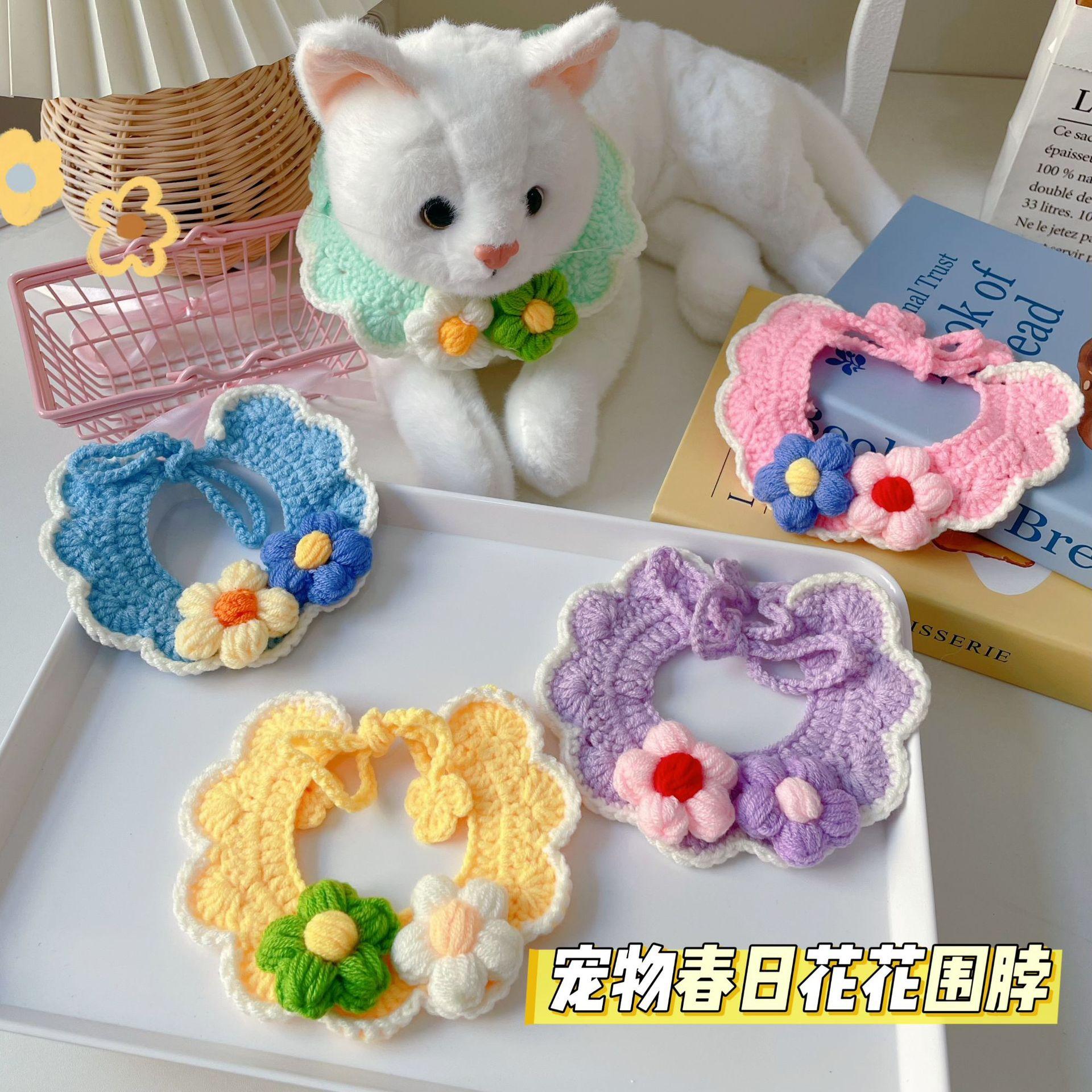Mascota Gato Perro Bufanda Flor de Primavera Collar Tejido Perro Pequeño Bufanda Decorativa Linda Bufanda