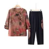 Conjunto de Ropa de Verano para Mujeres de Mediana Edad y Mayores, Elegante Camiseta de Manga Corta para Abuela, Ropa de Verano de Dos Piezas de Corte Holgado para Mamá