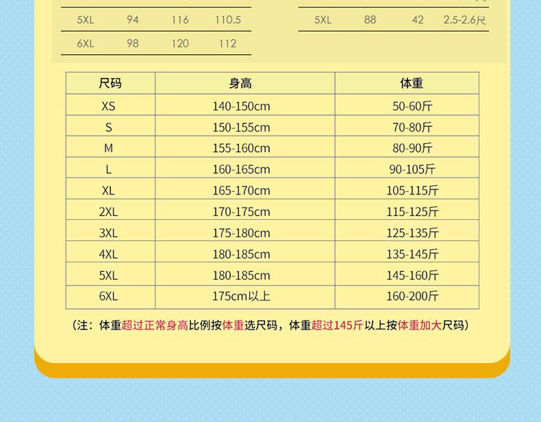 XS, S, M, L, XL, XXL, 3XL, 4XL, 5XL, 6XL