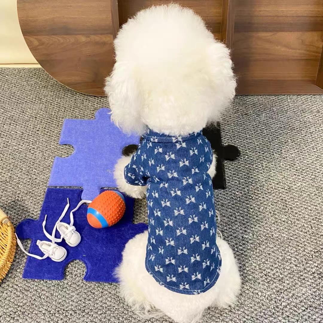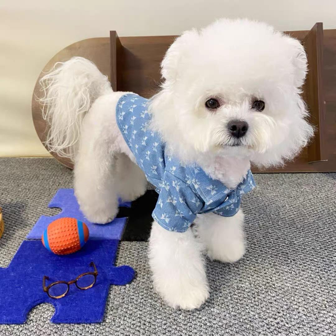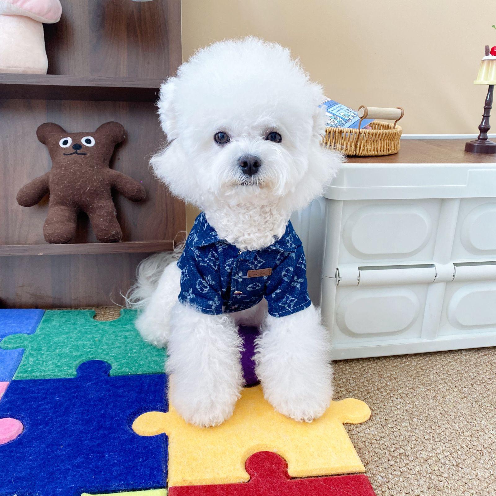 Camisa vaquera de manga corta para perro mascota primavera y verano guapo coreano perro mediano y pequeño mascota manga corta oso de peluche