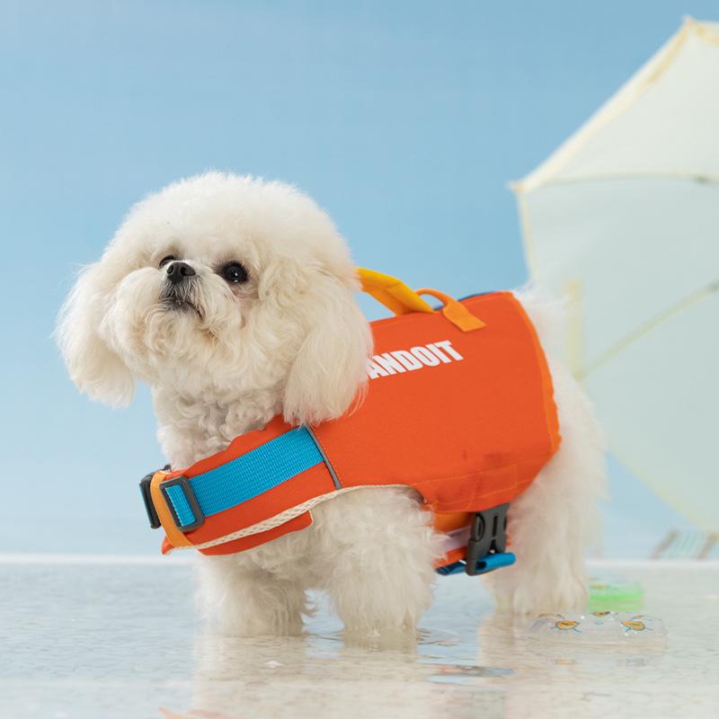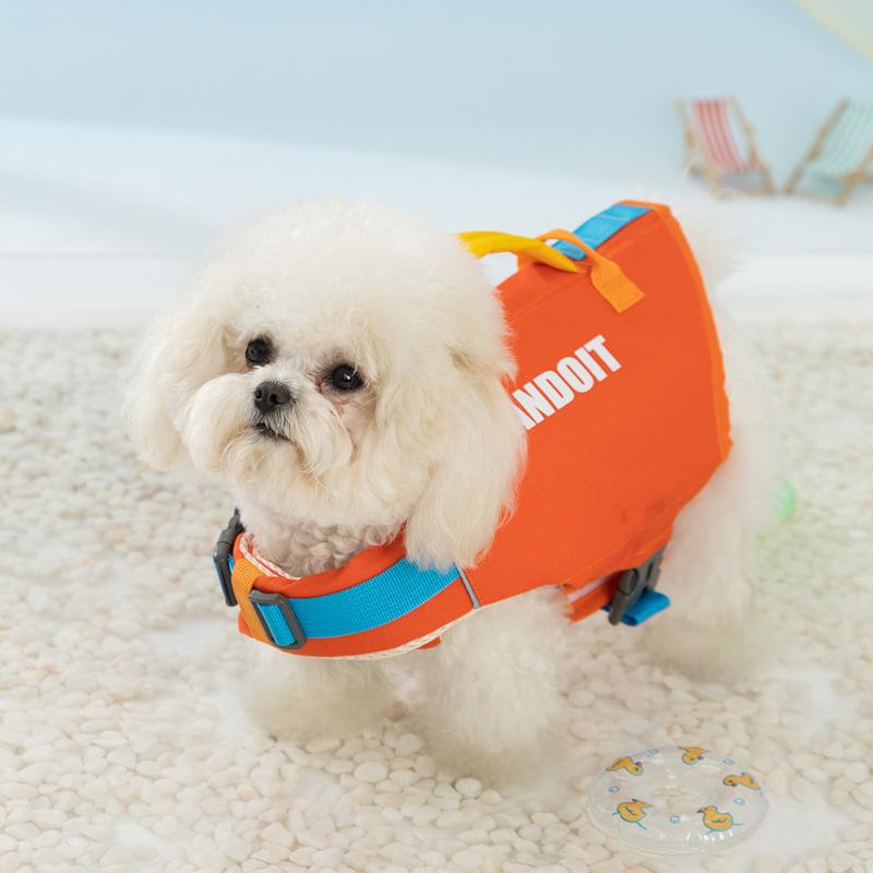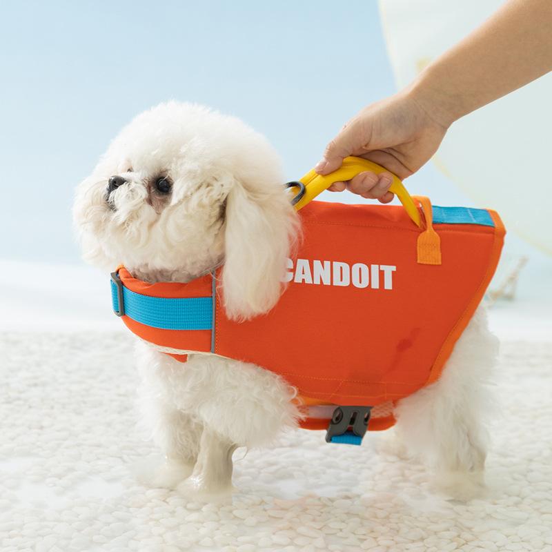 Verano Perro Dibujos Animados Bloque de Color Natación Chalecos Salvavidas de Gran Flotabilidad Mascota Tela Oxford Traje de Baño Impermeable Secado Rápido Ropa para Perro