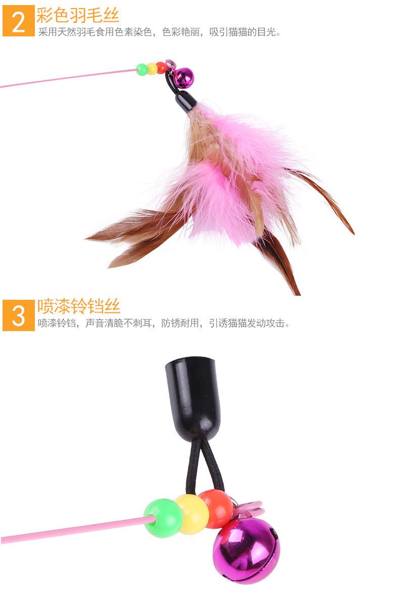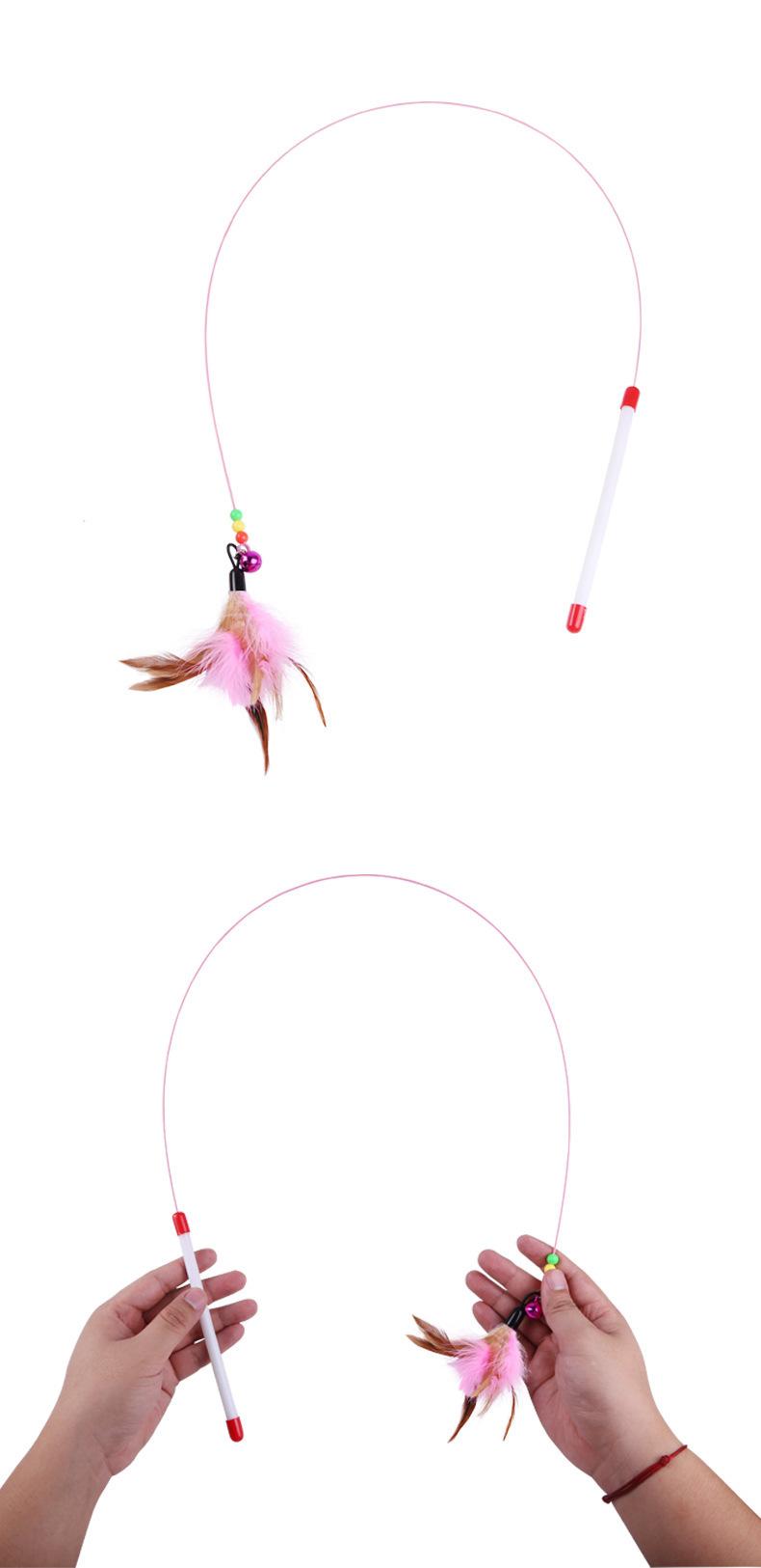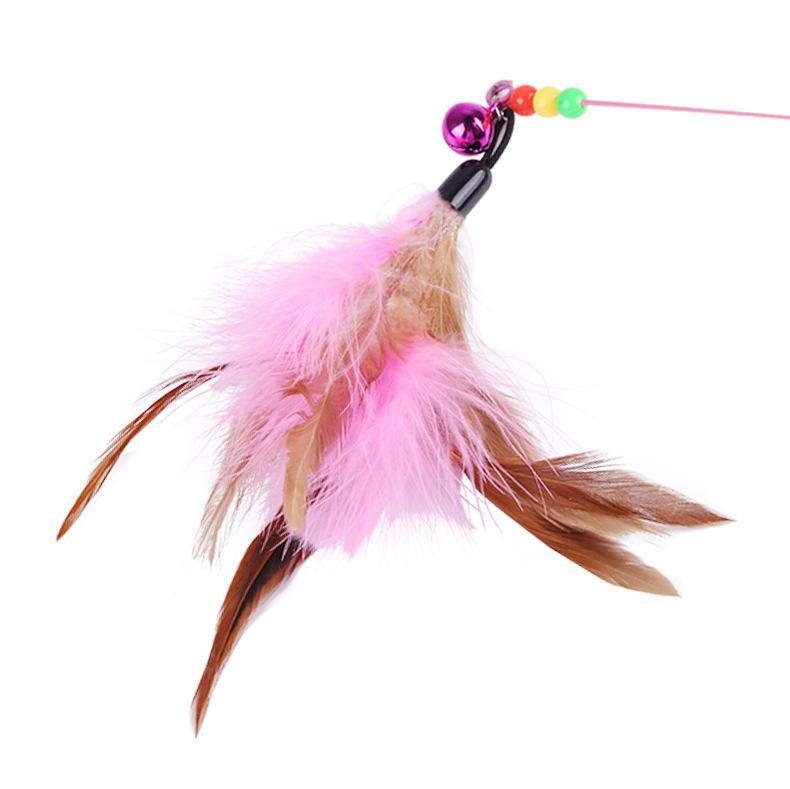 Juguete para gatos con forma de campana y plumas, para aliviar el aburrimiento, resistente a las mordeduras, alambre de acero y varilla larga, automático, para mascotas.