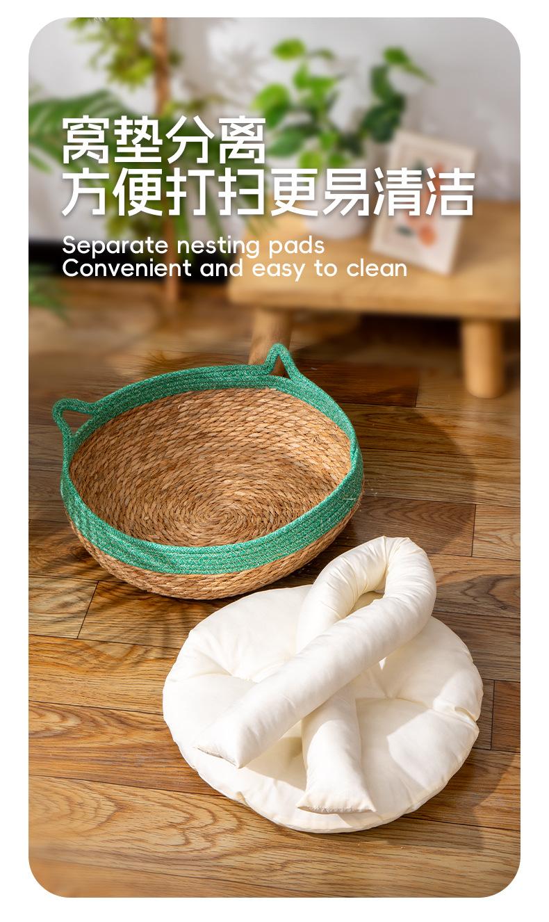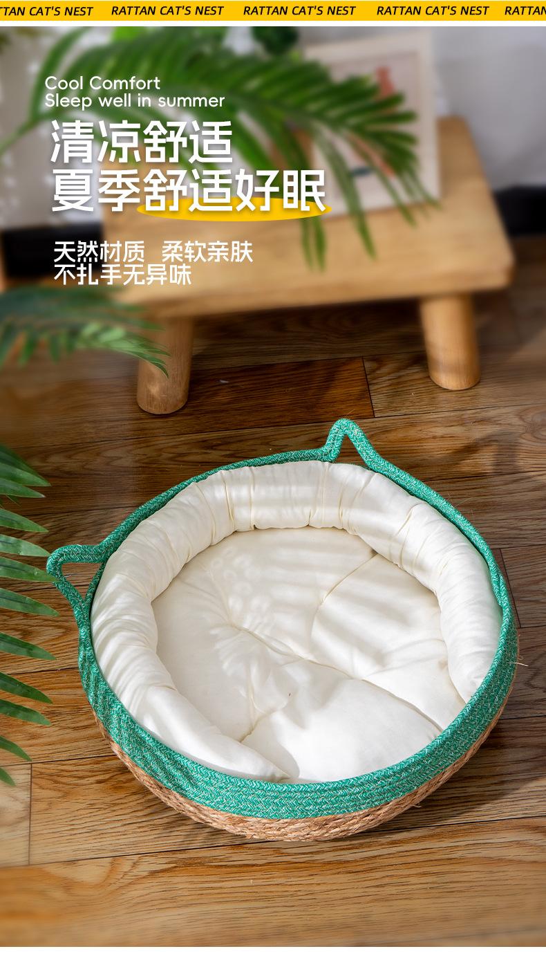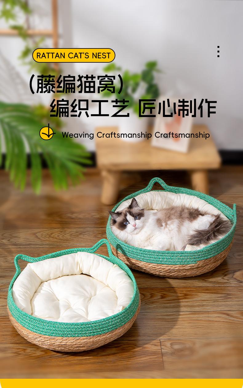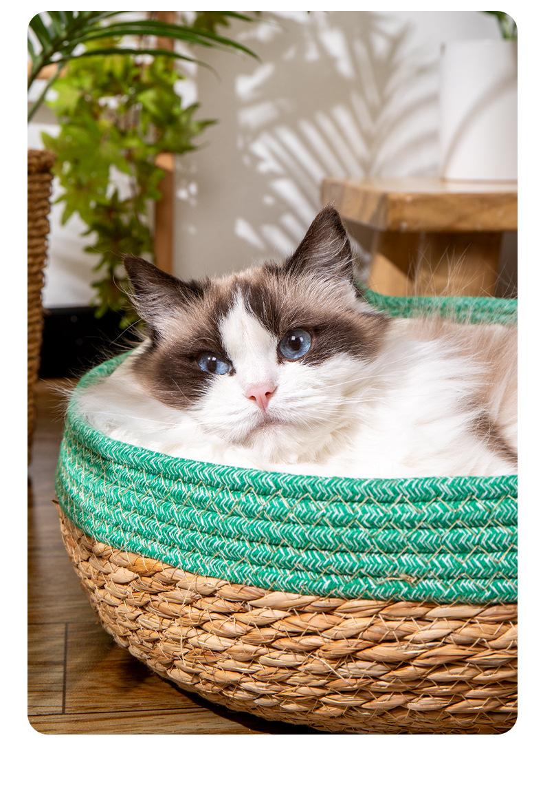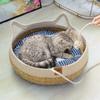 Nido para Gato Universal para las Cuatro Estaciones Invierno Cesta de Ratán para Gato Tabla Rascadora Tejido a Mano para Dormir Extraíble y Lavable Suministros para Mascotas
