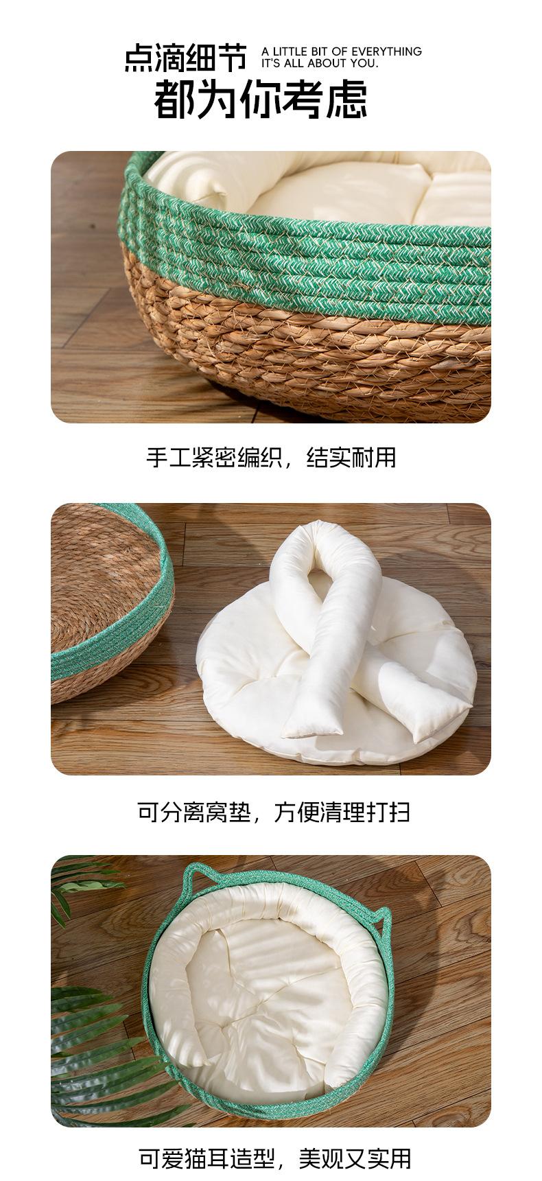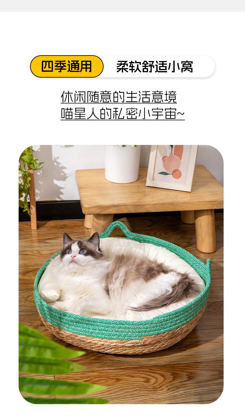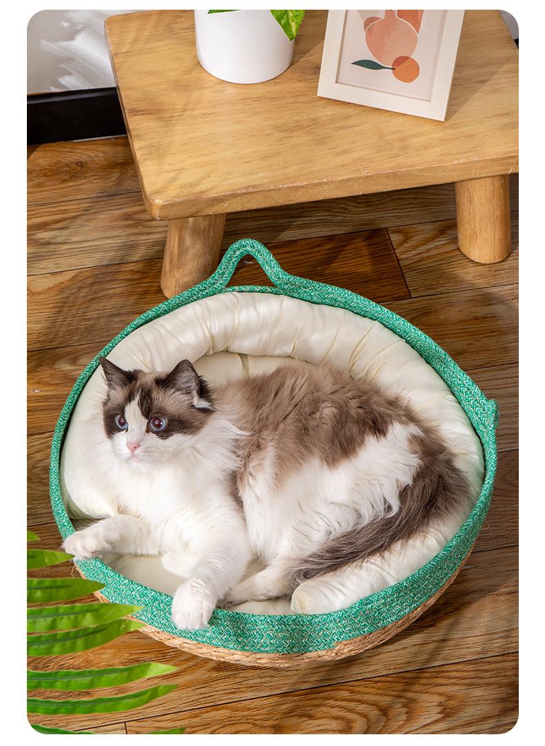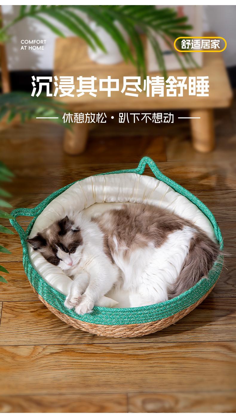 Nido para Gato Universal para las Cuatro Estaciones Invierno Cesta de Ratán para Gato Tabla Rascadora Tejido a Mano para Dormir Extraíble y Lavable Suministros para Mascotas