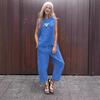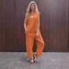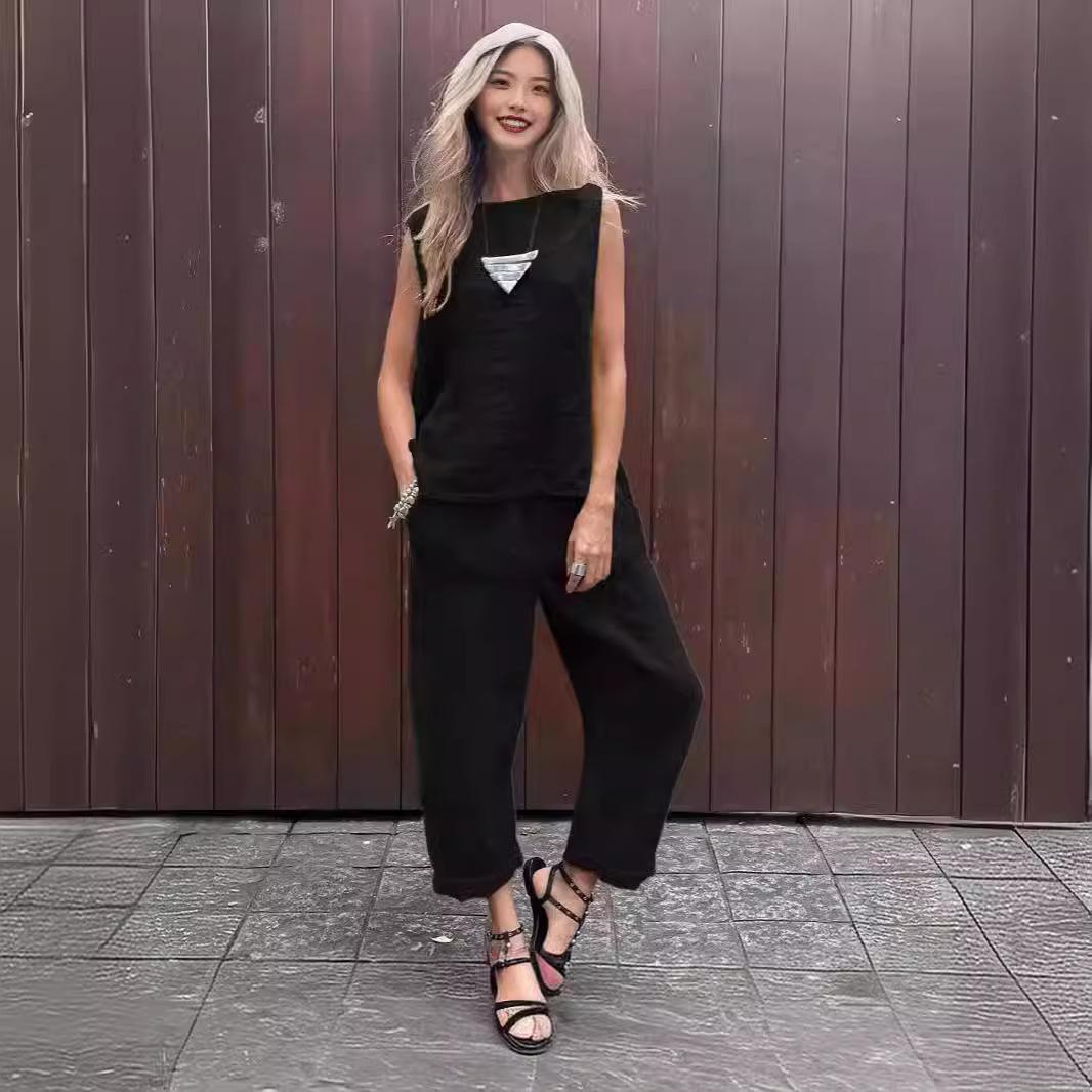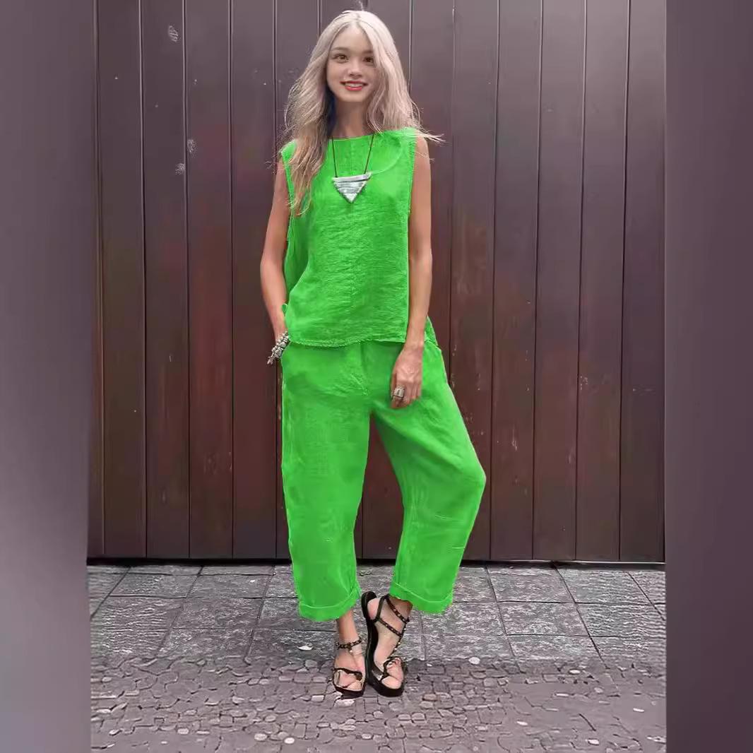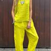 Traje de mujer de primavera y verano 2024, nuevo, de algodón y lino, informal, holgado, de dos piezas, sin mangas, con pantalones holgados