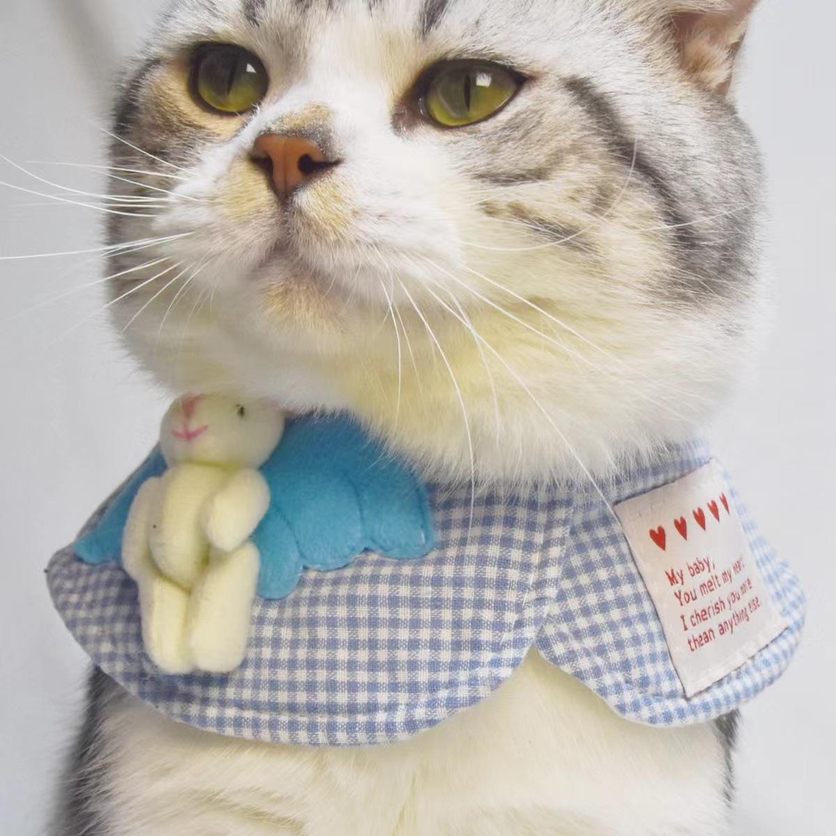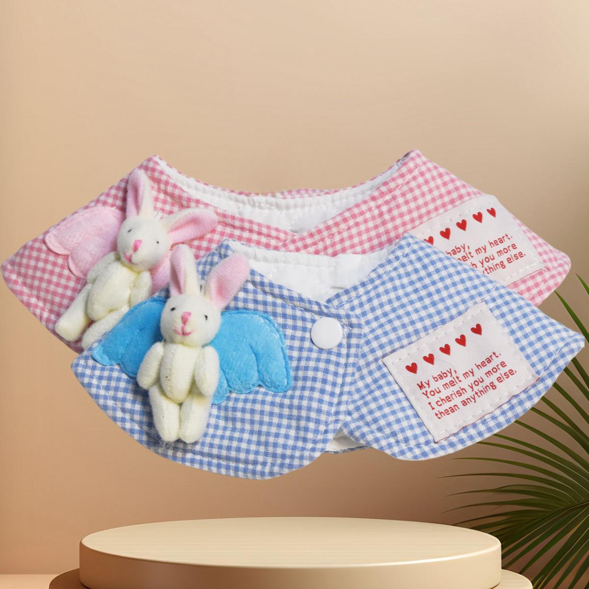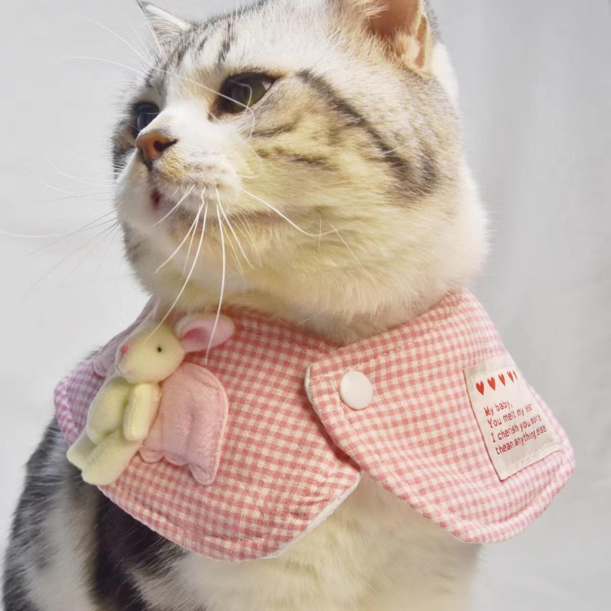 Toalla antideslizante para mascotas, gatos, perros pequeños, babero bonito, chal de conejo a cuadros, babero con foto y joyería