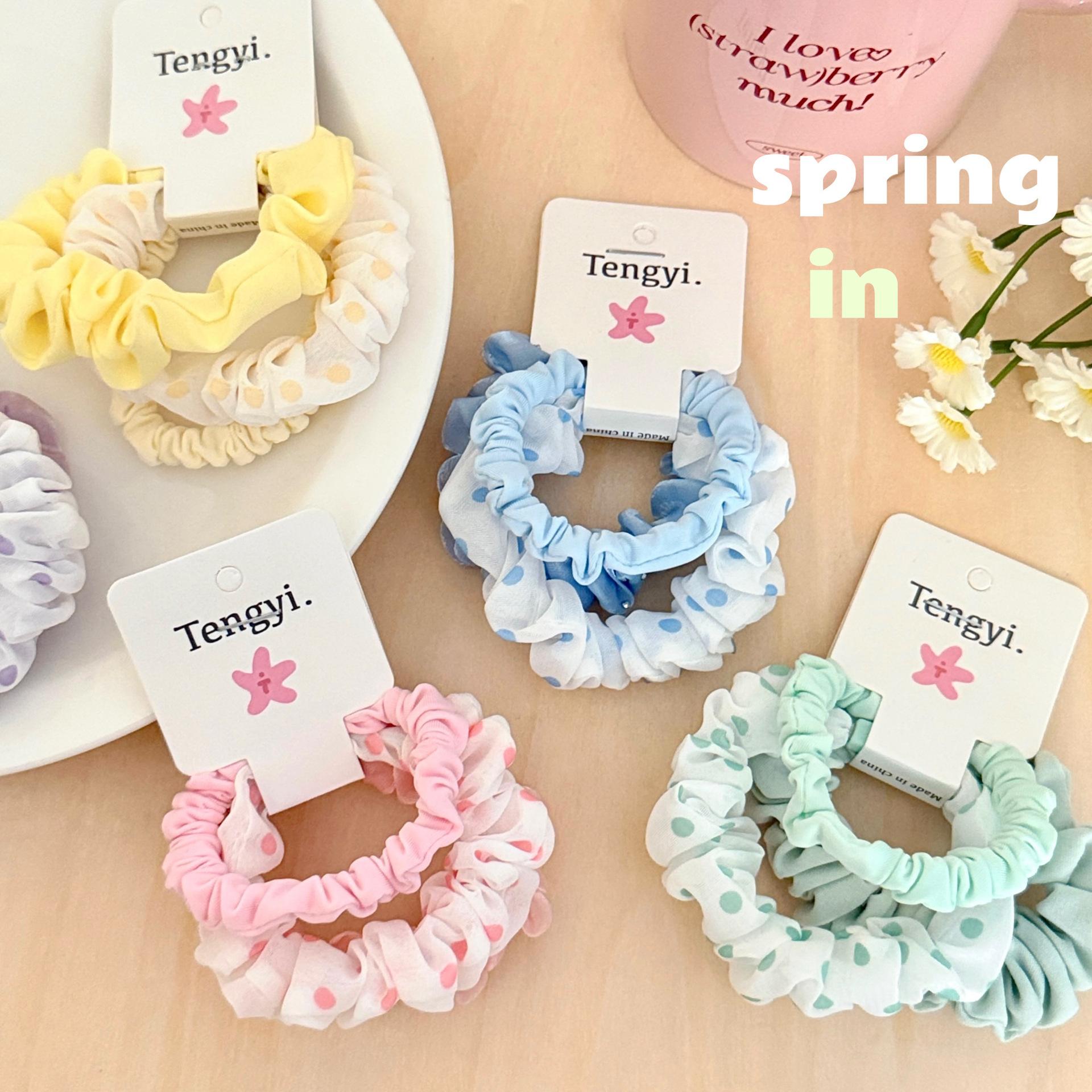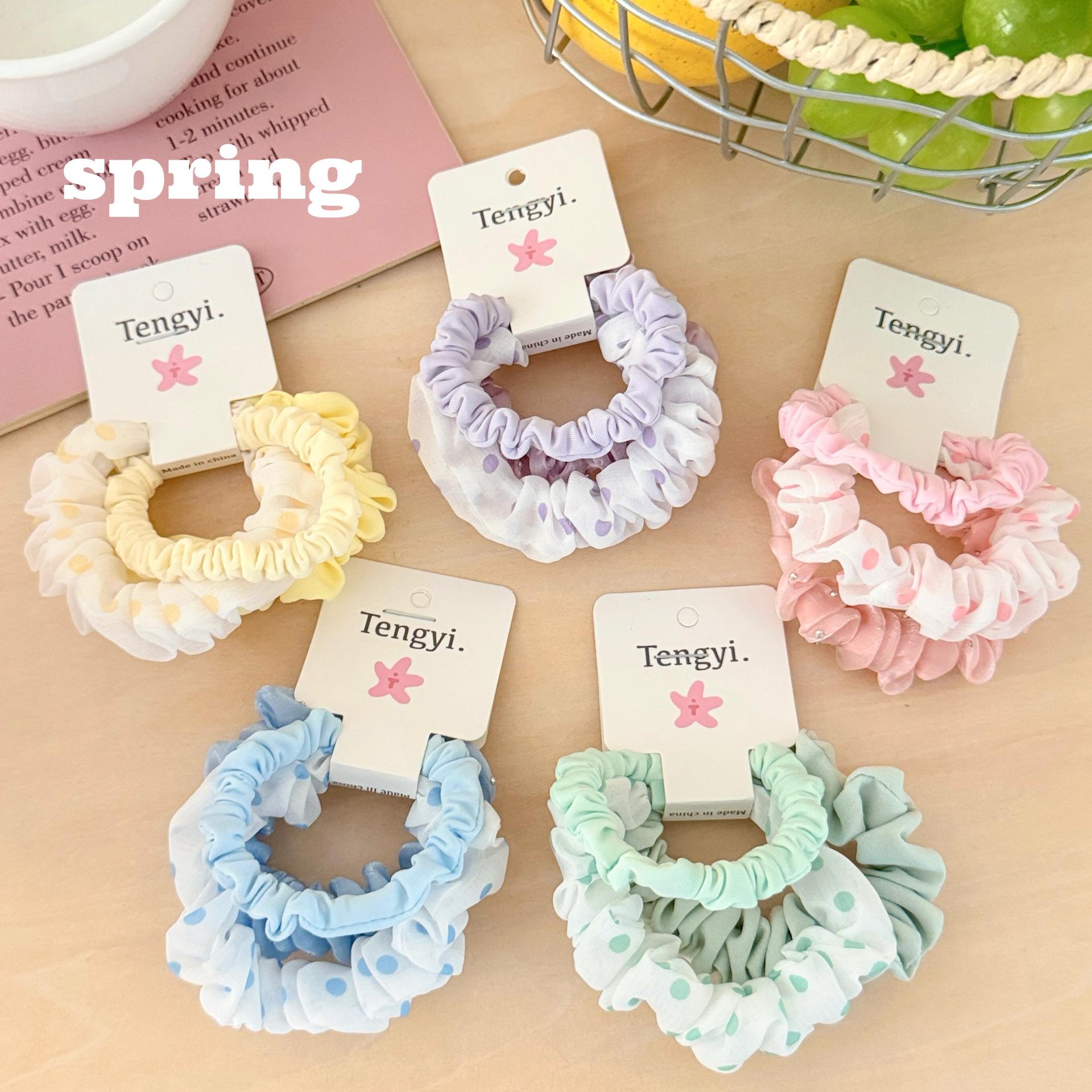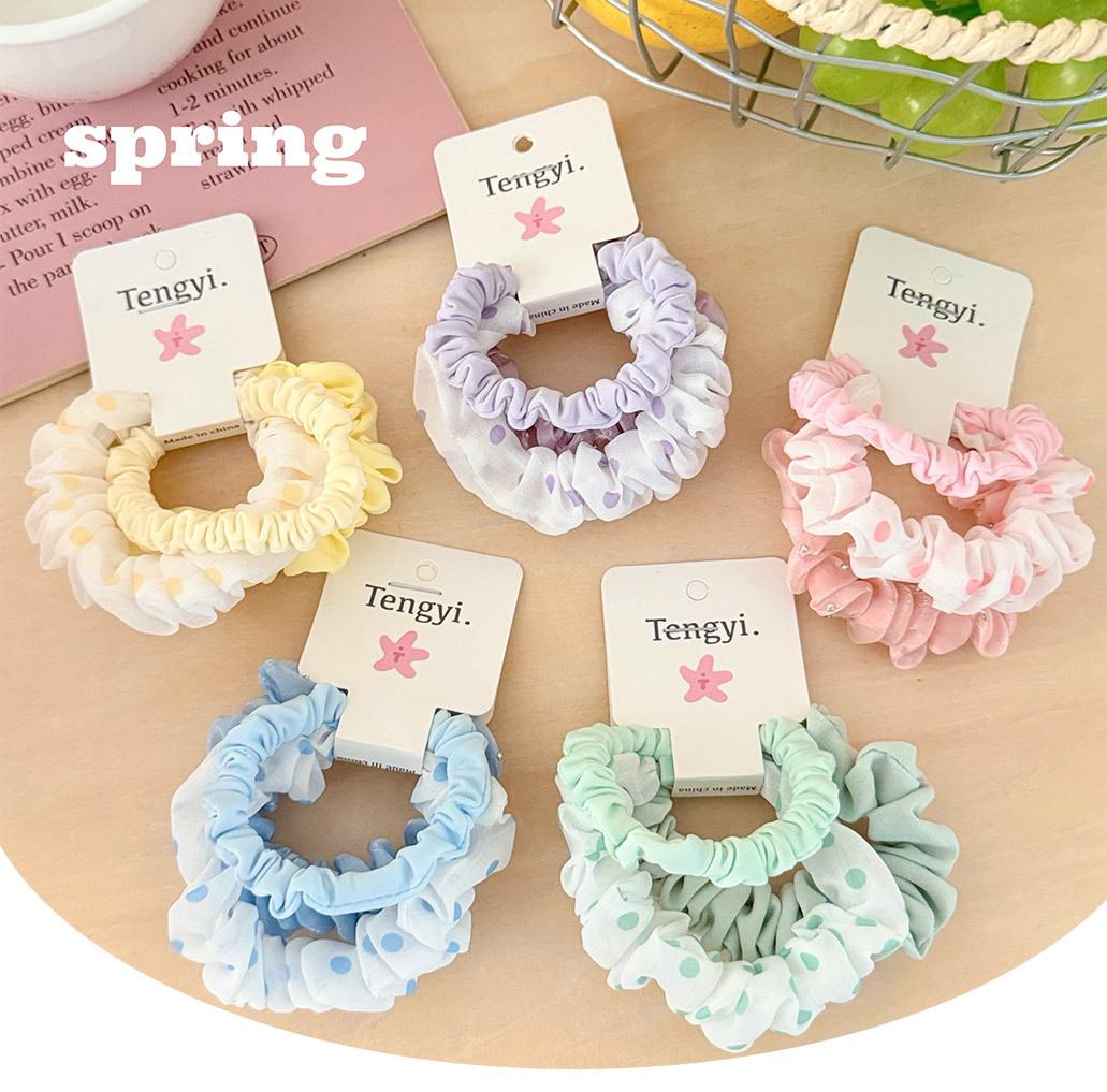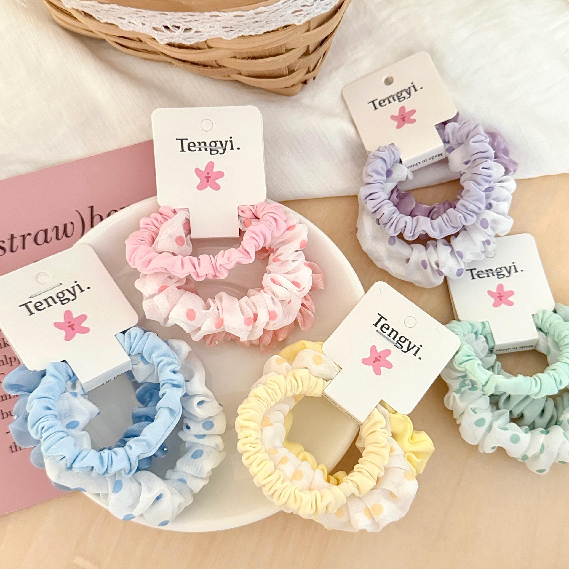 Traje de combinación de anillos de intestino delgado de color caramelo, cuerda para el cabello de color dulce, banda de cuero coreana, cuerda para el cabello de color crema, accesorios para el cabello de hadas de tela