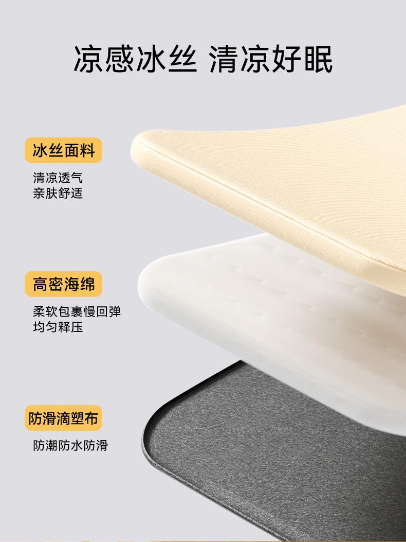 Ice silk mat + sandwich + woven cloth + sponge (2cm) + pearl cotton (1-1-1.5-1.5cm)