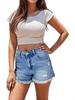 Nuevo transfronterizo Amazon wish en stock 2025 Verano Nuevo Lavado Roto Shorts de mezclilla Jeans de cintura media Mujer
