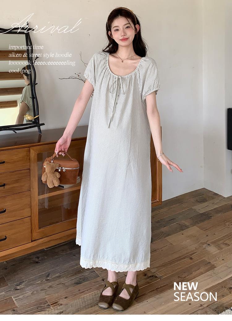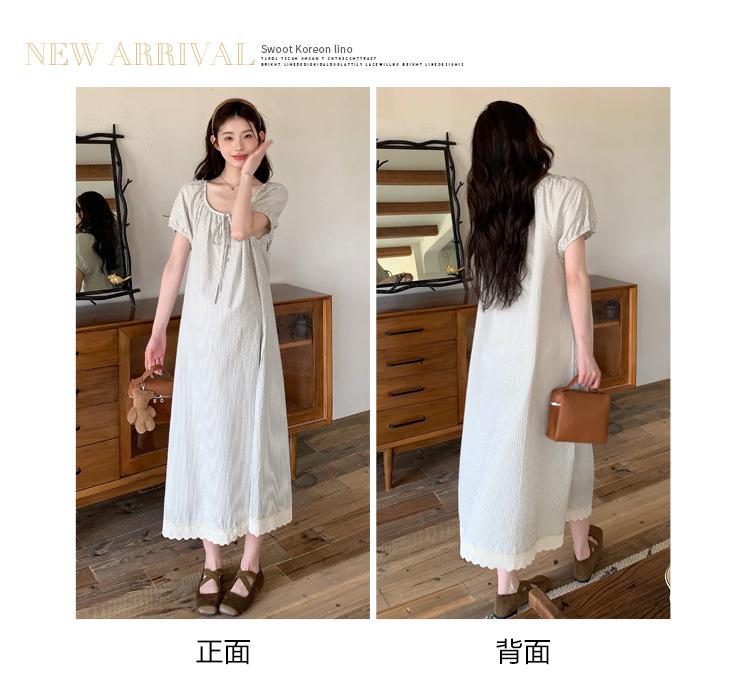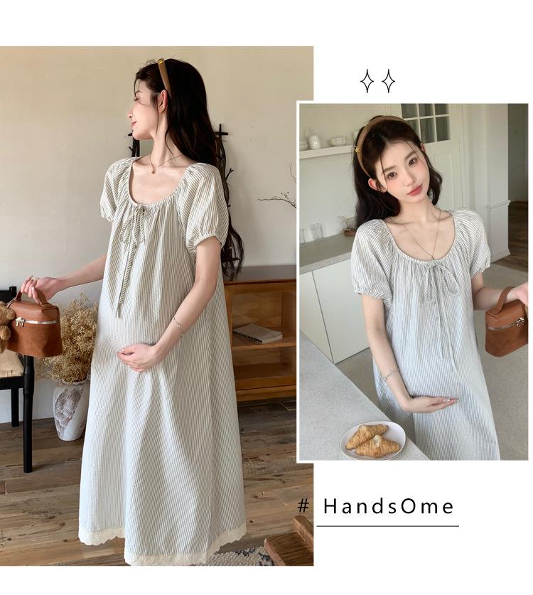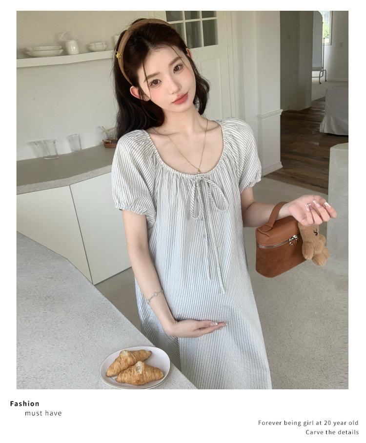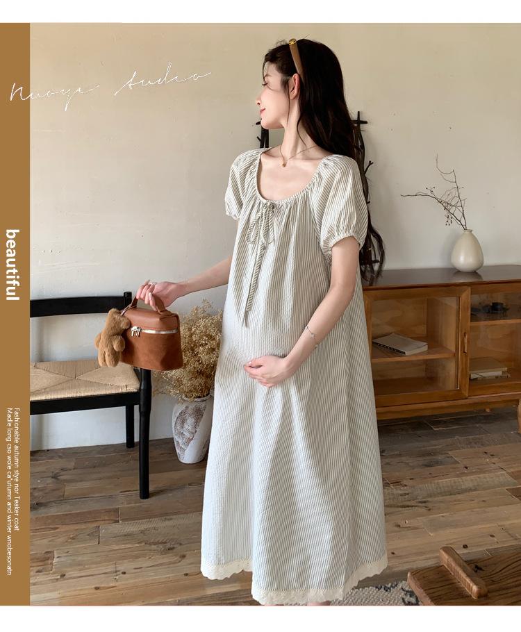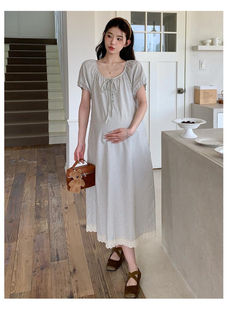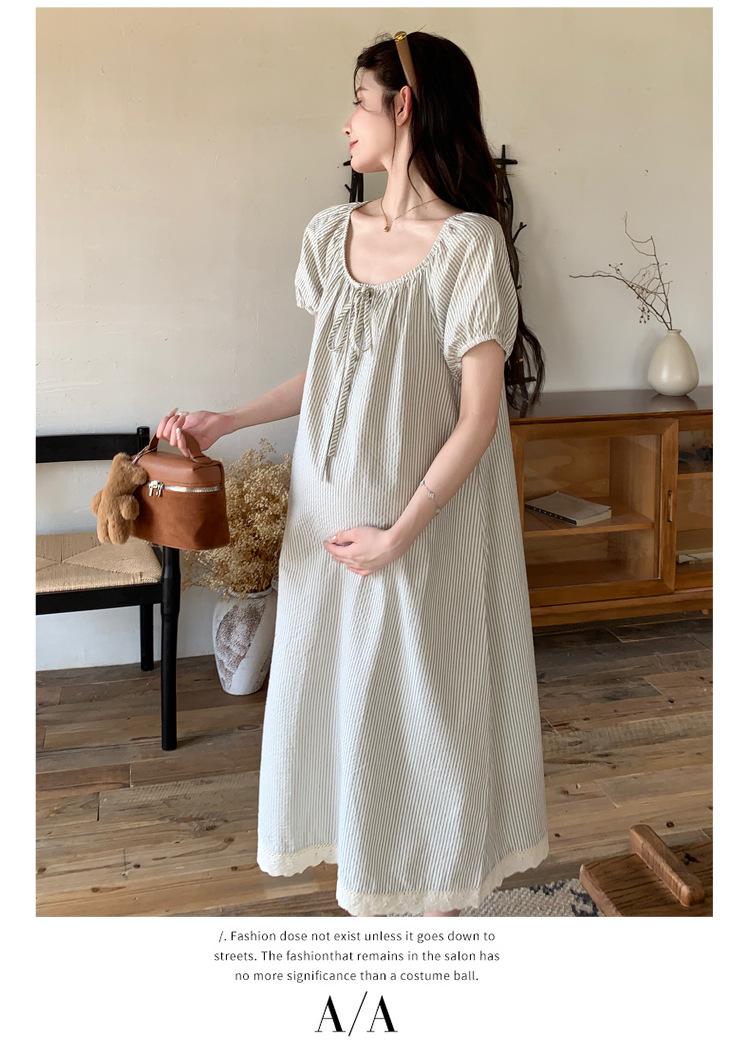 En stock Vestido a rayas para embarazadas Verano 2024 Nuevo Vestido suelto a rayas de algodón para embarazadas