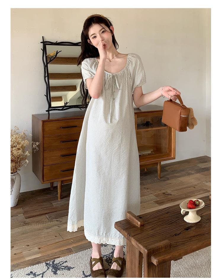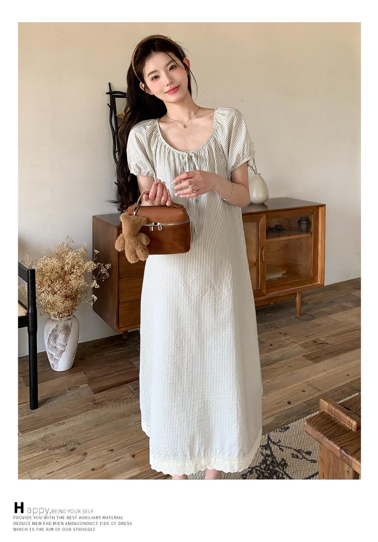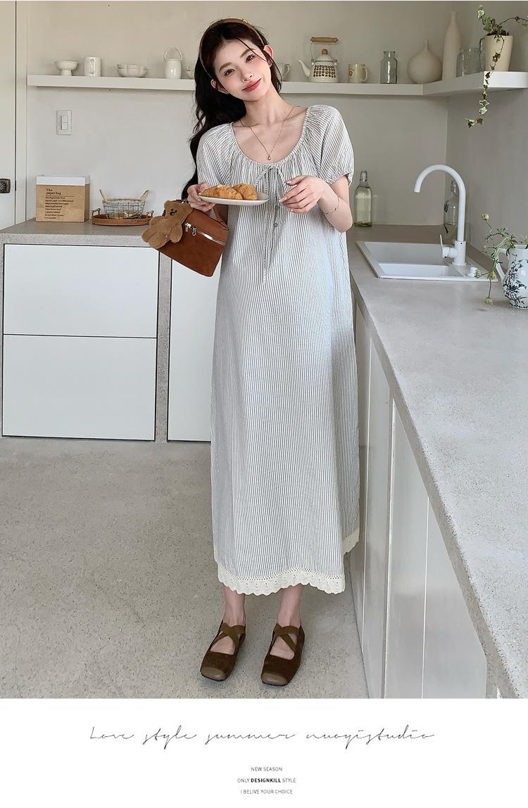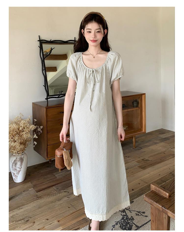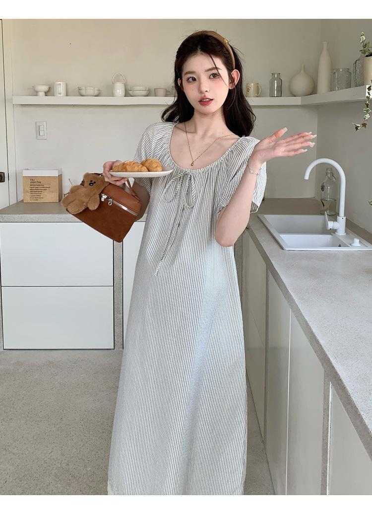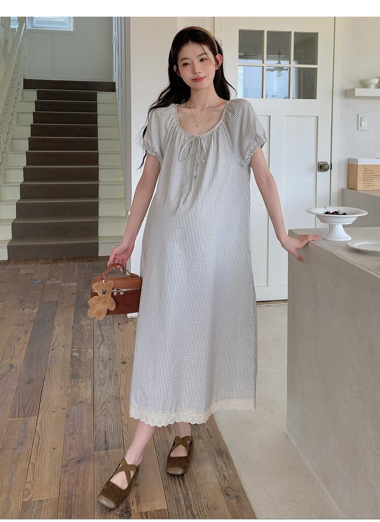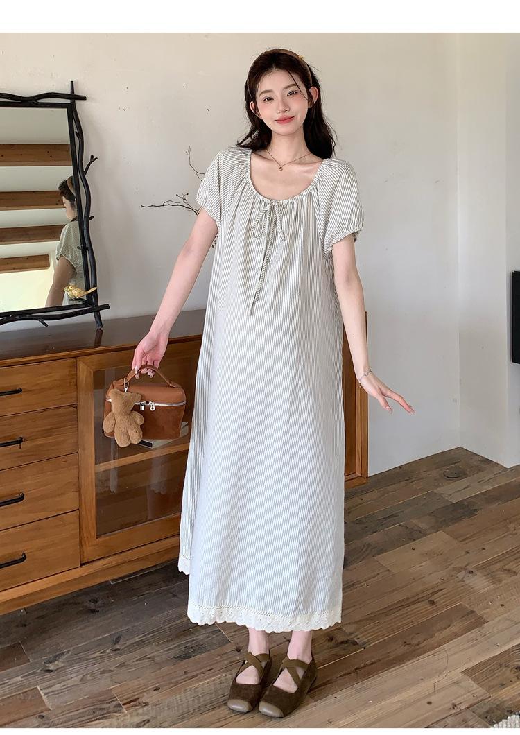 En stock Vestido a rayas para embarazadas Verano 2024 Nuevo Vestido suelto a rayas de algodón para embarazadas