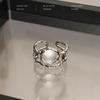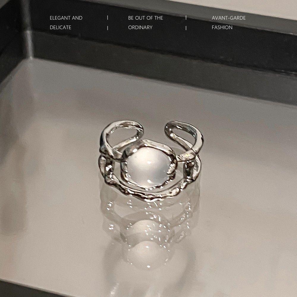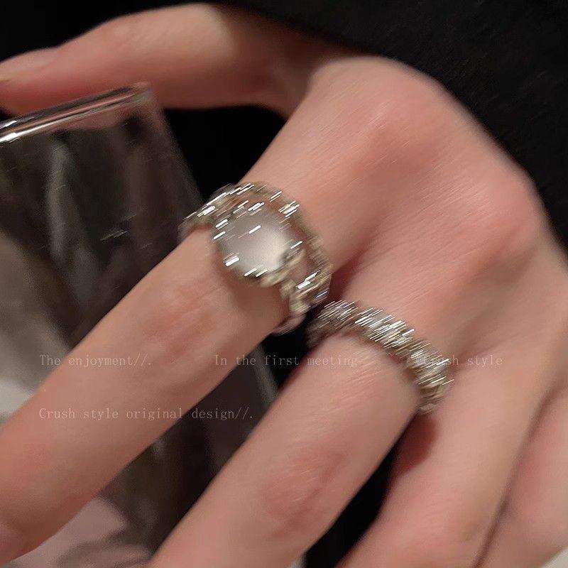Anillo de Piedra Lunar de Dos Piezas Anillo Abierto de Pedrería para Mujer Diseño Nicho Anillo Liso para Dedo Anillo Francés de Autodisciplina