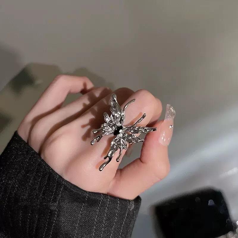 Anillo abierto de mariposa líquida de plata para mujer, diseño de nicho, anillo de dedo índice de pareja de alta calidad, anillo personalizado de moda