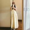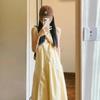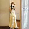 Verano 2025 Nuevo Diseño Dulce que Reduce la Edad Falda Larga Elegante Francesa Vestido Chaleco Amarillo sin Mangas para Mujer