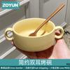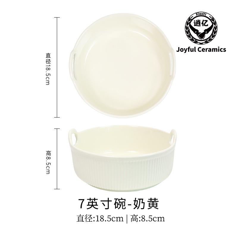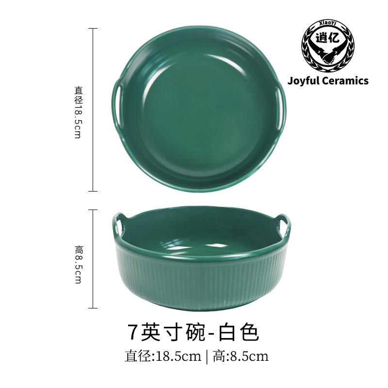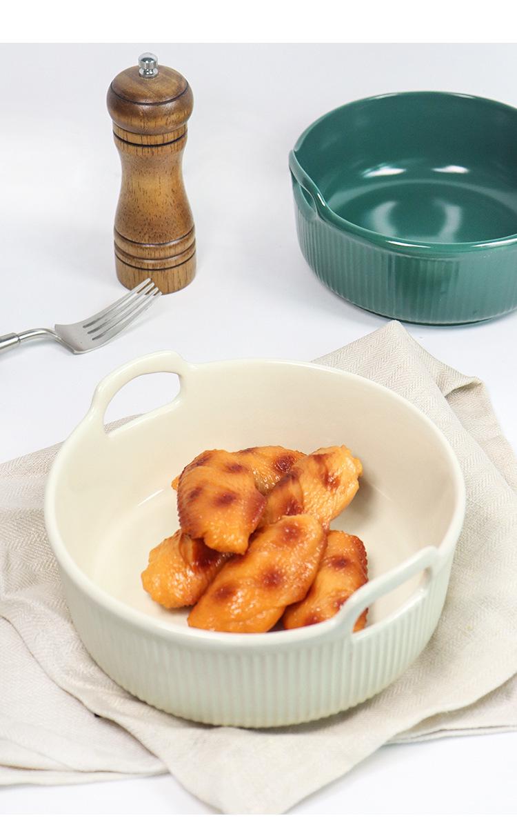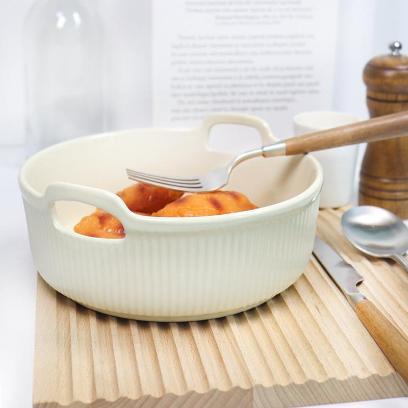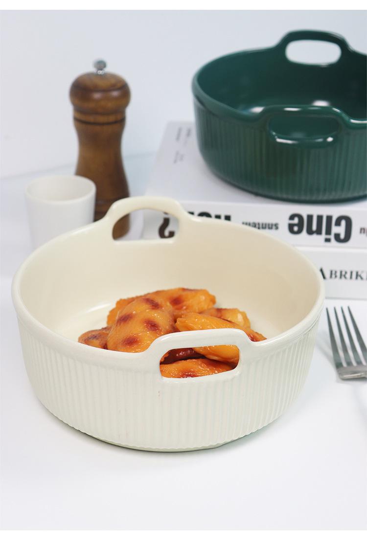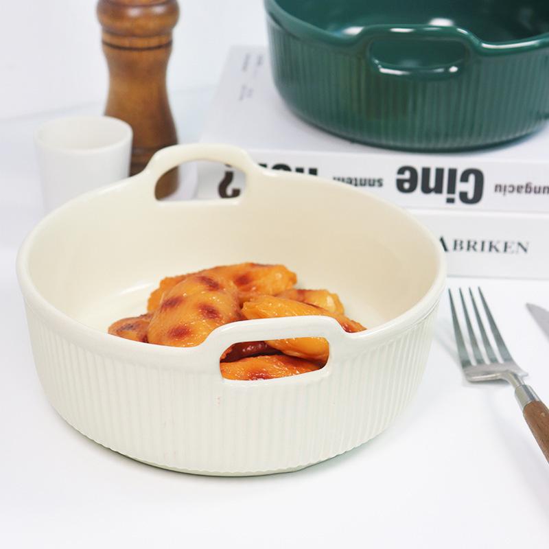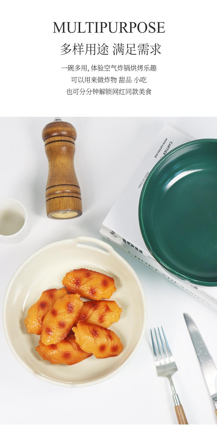 Tazón para Hornear para Freidora de Aire Cerámico para Hogar Horno de Alta Temperatura Horno Microondas Tazón Especial para Arroz Horneado con Queso Asas Dobles
